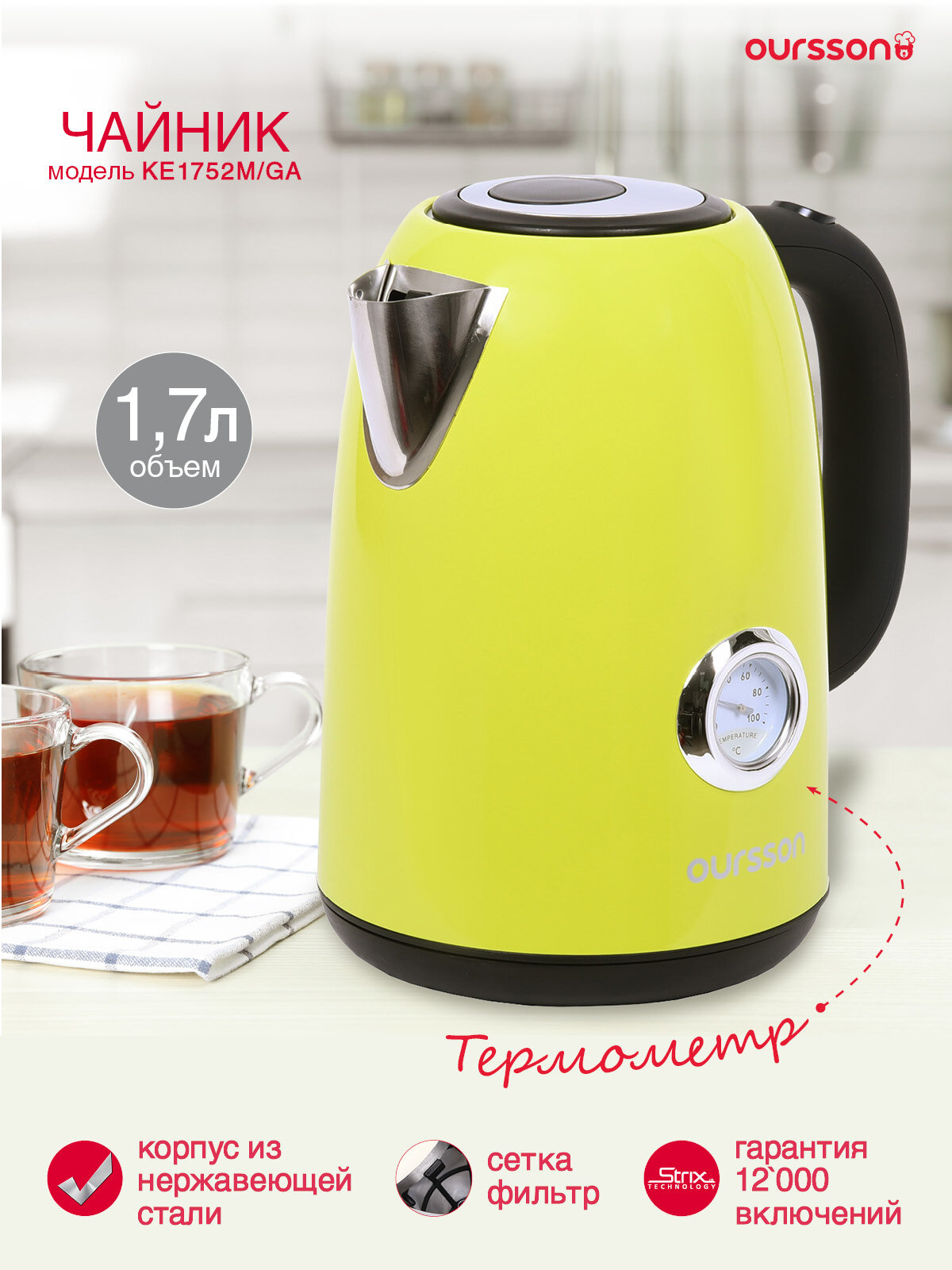 Электрический чайник Oursson KE1752M/GA интересное: