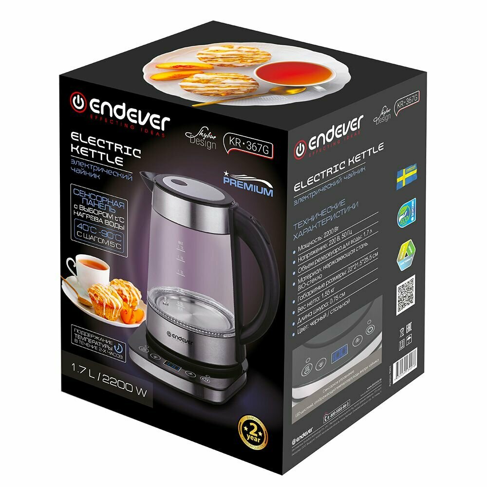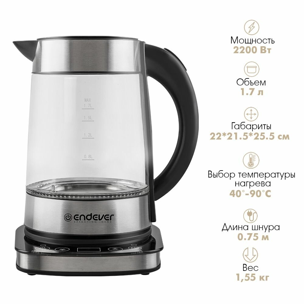Чайник электрический стеклянный с сенсорным управлением ENDEVER KR-367G интересное: