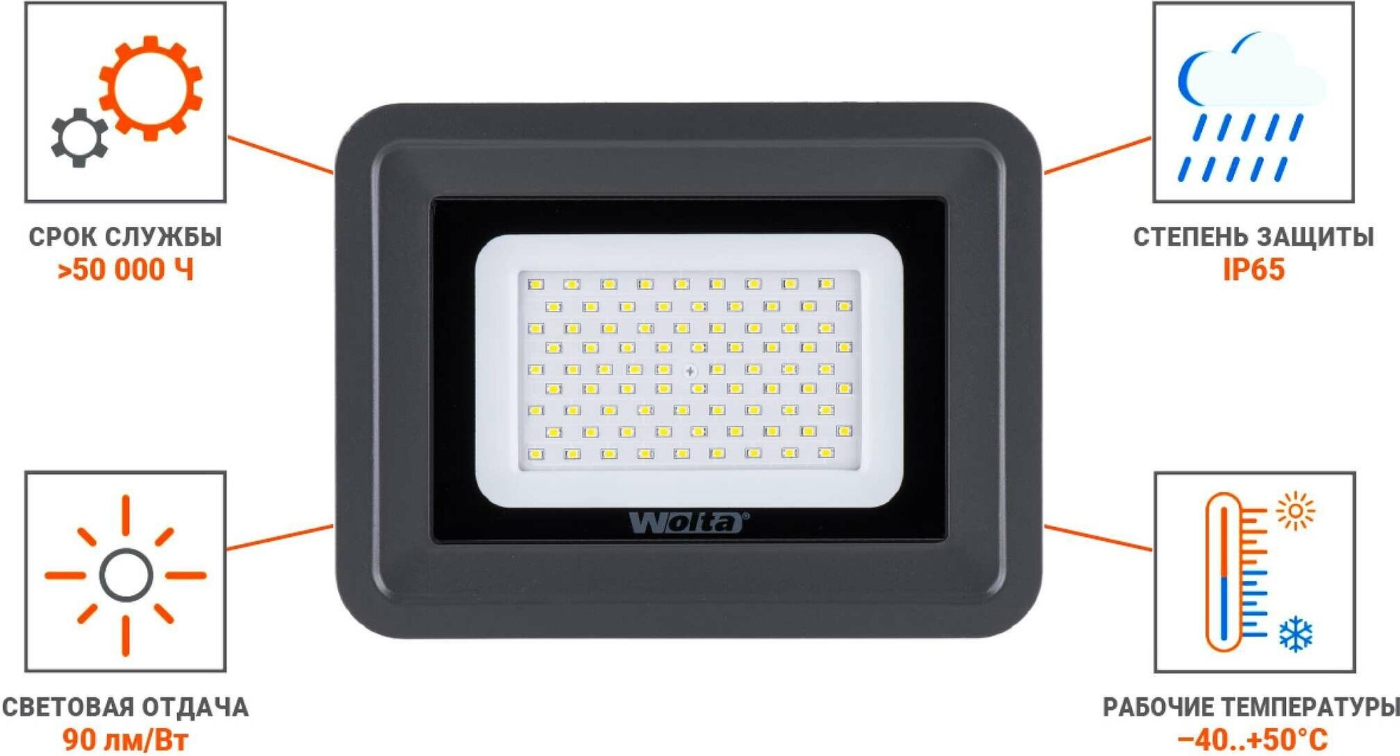 WFL-70W/06 WOLTA Светодиодный прожектор WFL-70W/06 5500K 70 Вт SMD IP65 6000 Лм