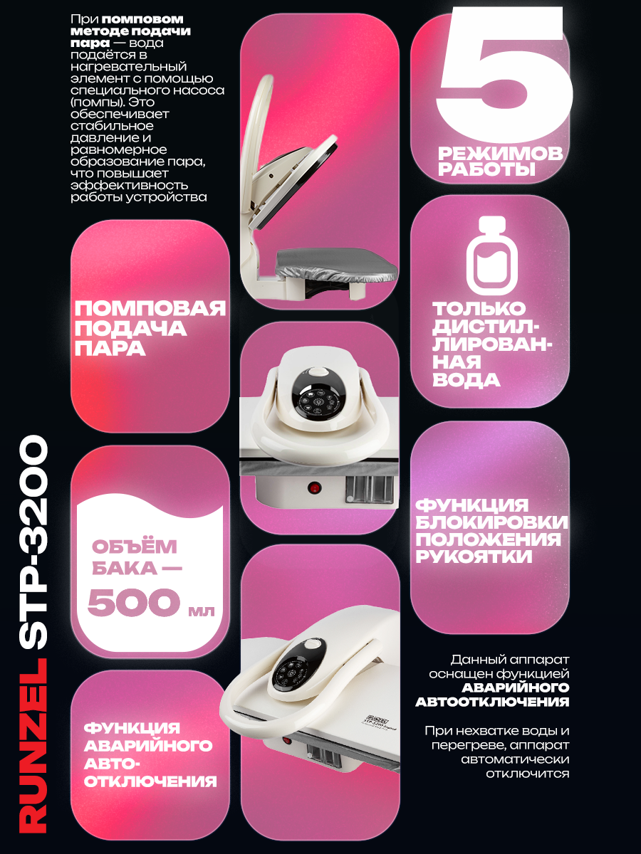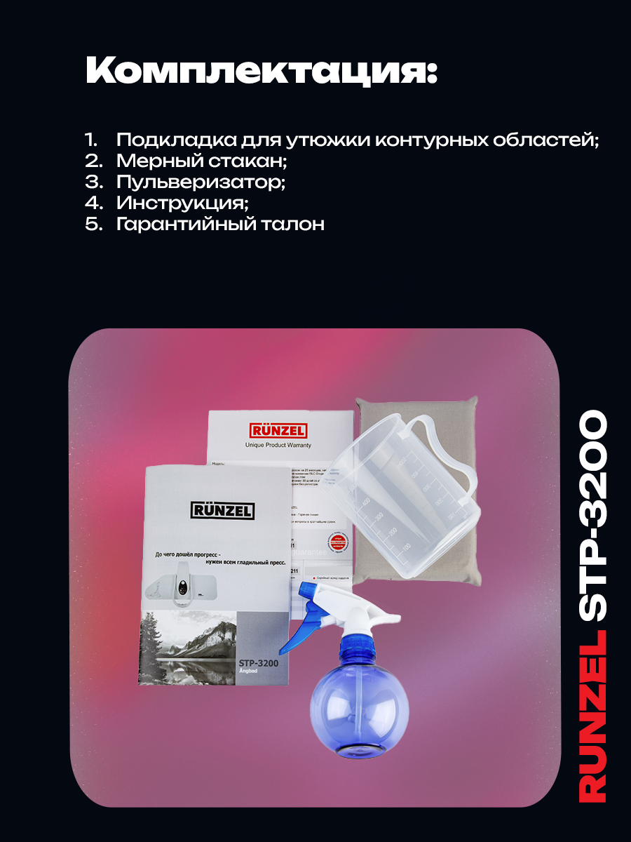 RUNZEL STP-3200 Angbad профессиональный гладильный пресс для одежды интересное: