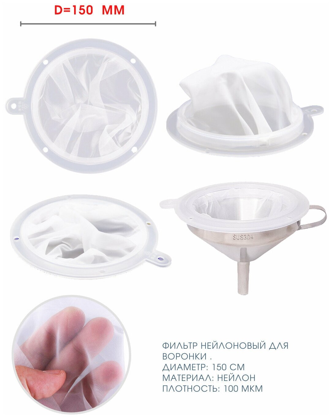 Фильтр нейлоновый для воронки, диаметр 150мм, пористость 100мкм / Тканевый фильтр для мёда, браги, вина и при угольной фильтрации. интересное:
