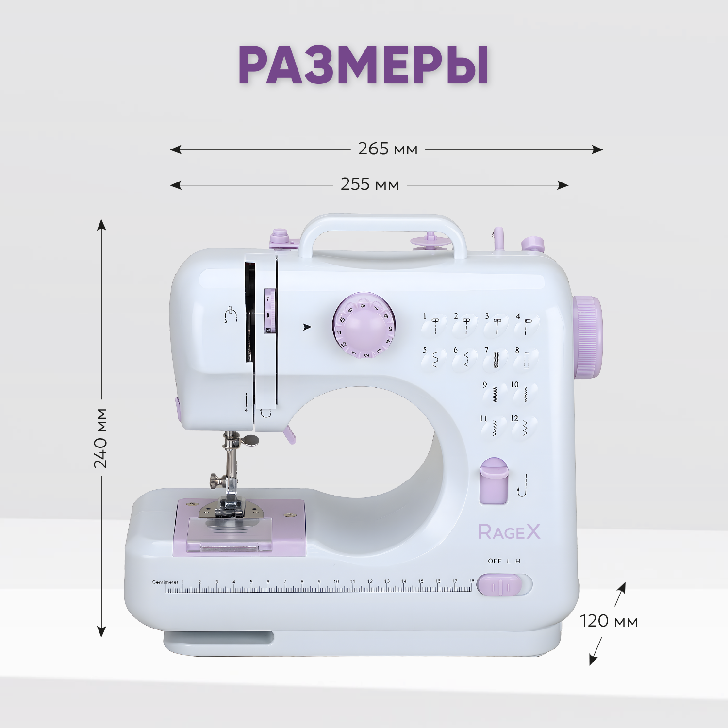 Купить Мини швейная машинка Rage XR1101-100, электрическая 12 типов стежков, 2 скорости + педаль, работает от сети и батареек