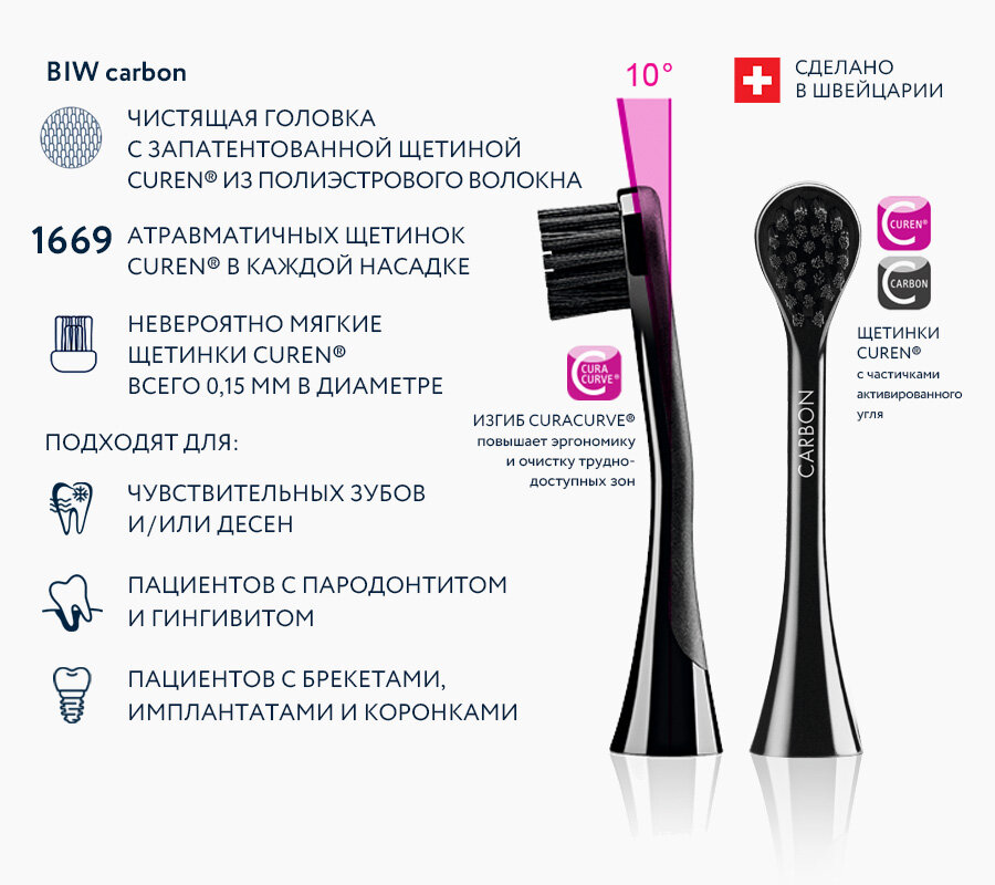 Набор насадок для зубной щетки Black Is White от бренда CURAPROX интересное: