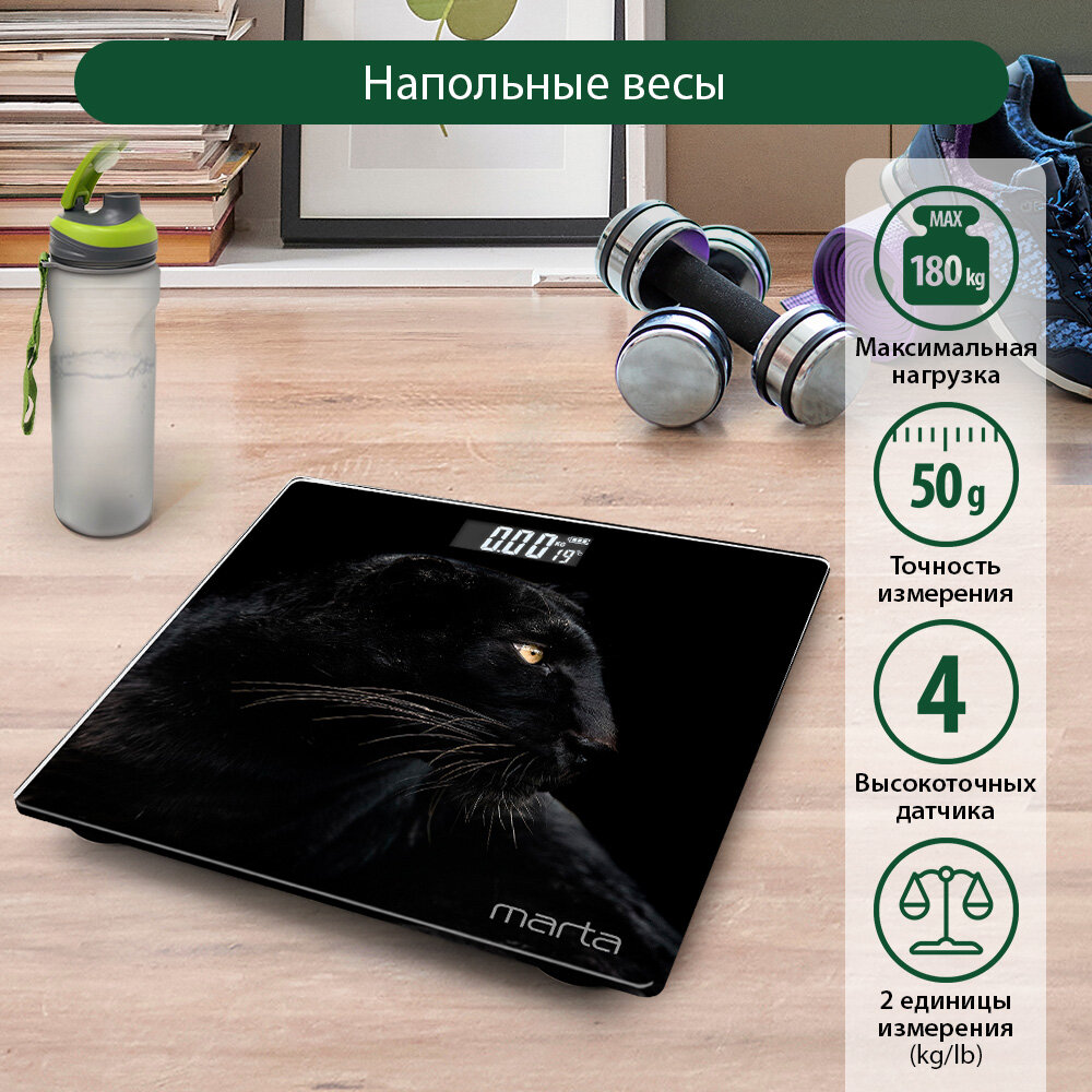 Купить MARTA MT-1678 черная пантера весы напольные сенсор, встроенный термометр