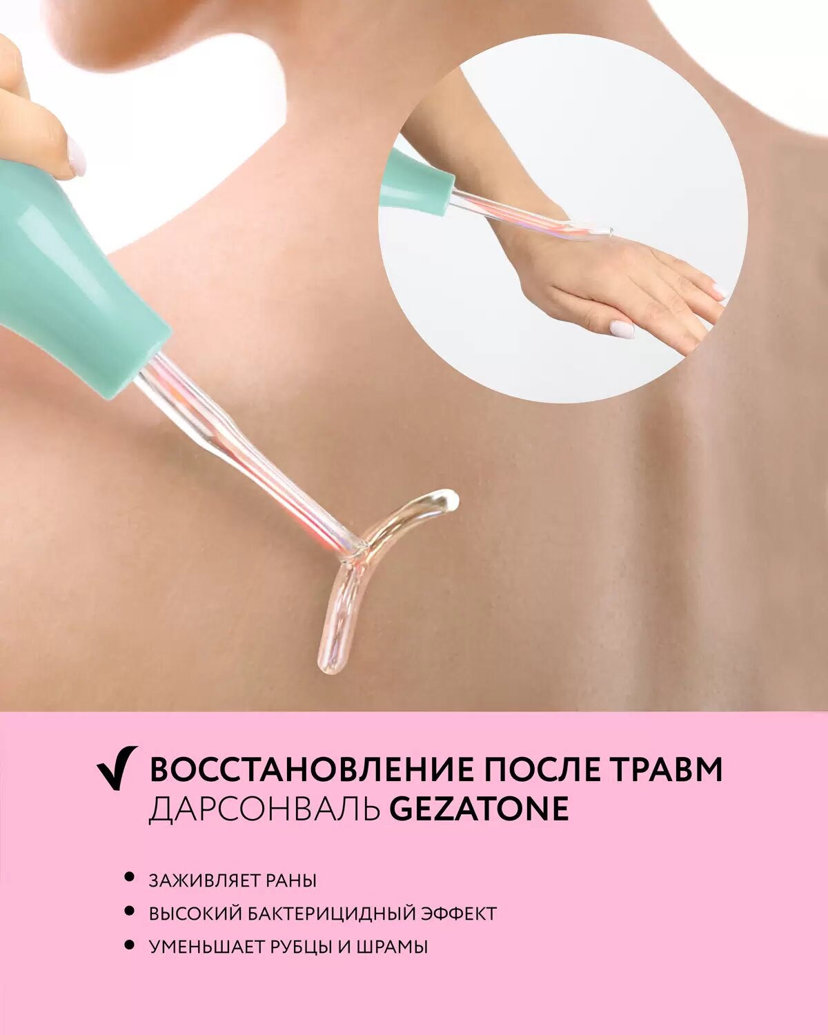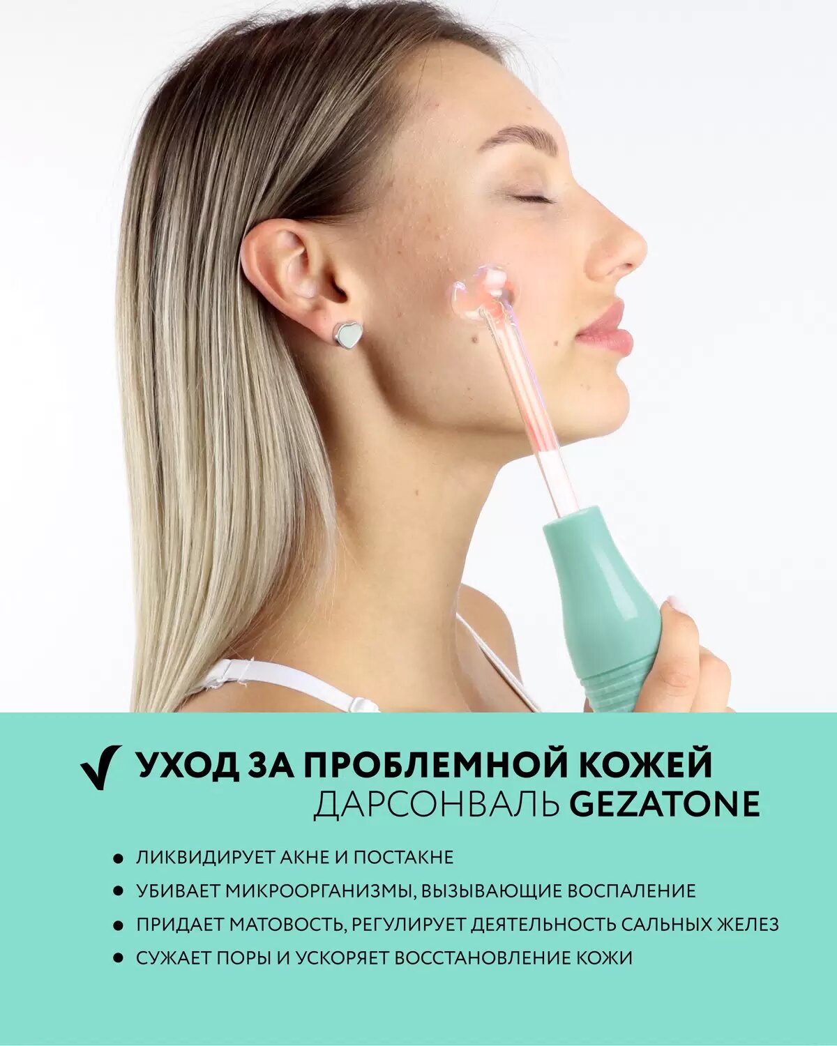 Дарсонваль Gezatone BP-7000, 5 насадок, для лица, тела и волос, бирюзовый