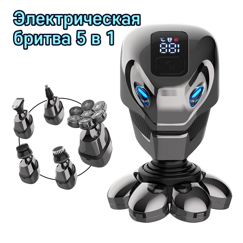 Мужская электрическая бритва 5 в 1, бритва мужская, бритва мужская электрическая, бритва электрическая, Серебряный интересное: