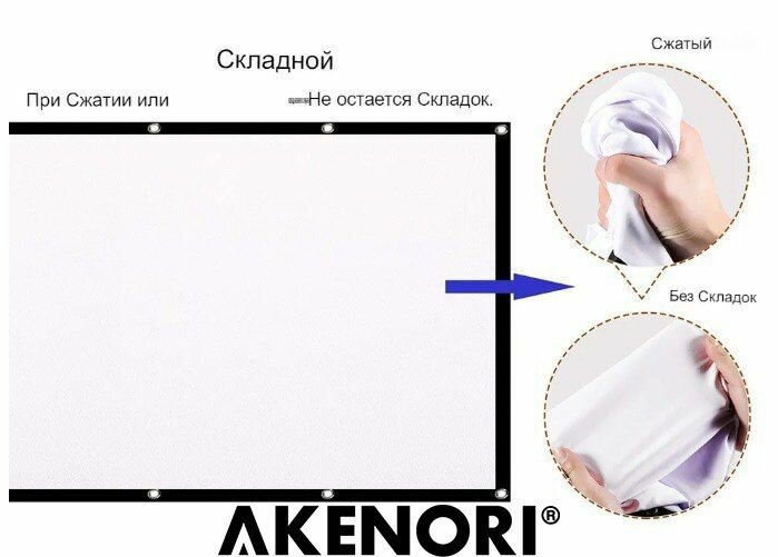 Экран для проектора 100 дюймов Akenori 005 Светоотражающий с крюками,Серый (Формат 16:9 и 16:10)