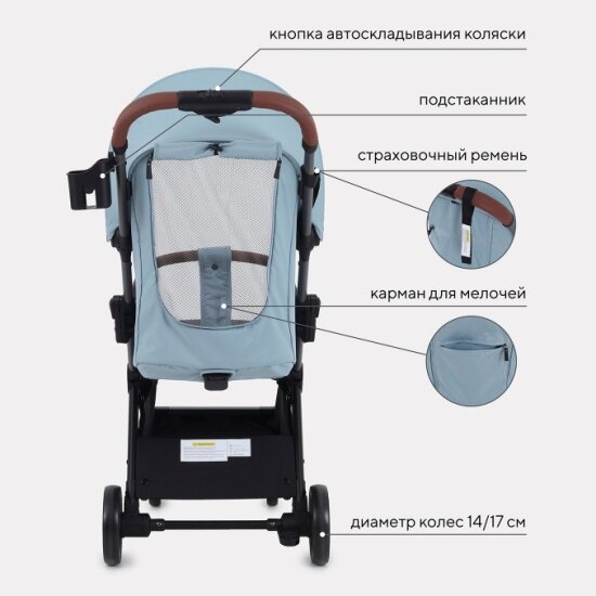 Коляска прогулочная детская с автосложением для путешествий MOWBaby "ATOM" MB200 Blue интересное: