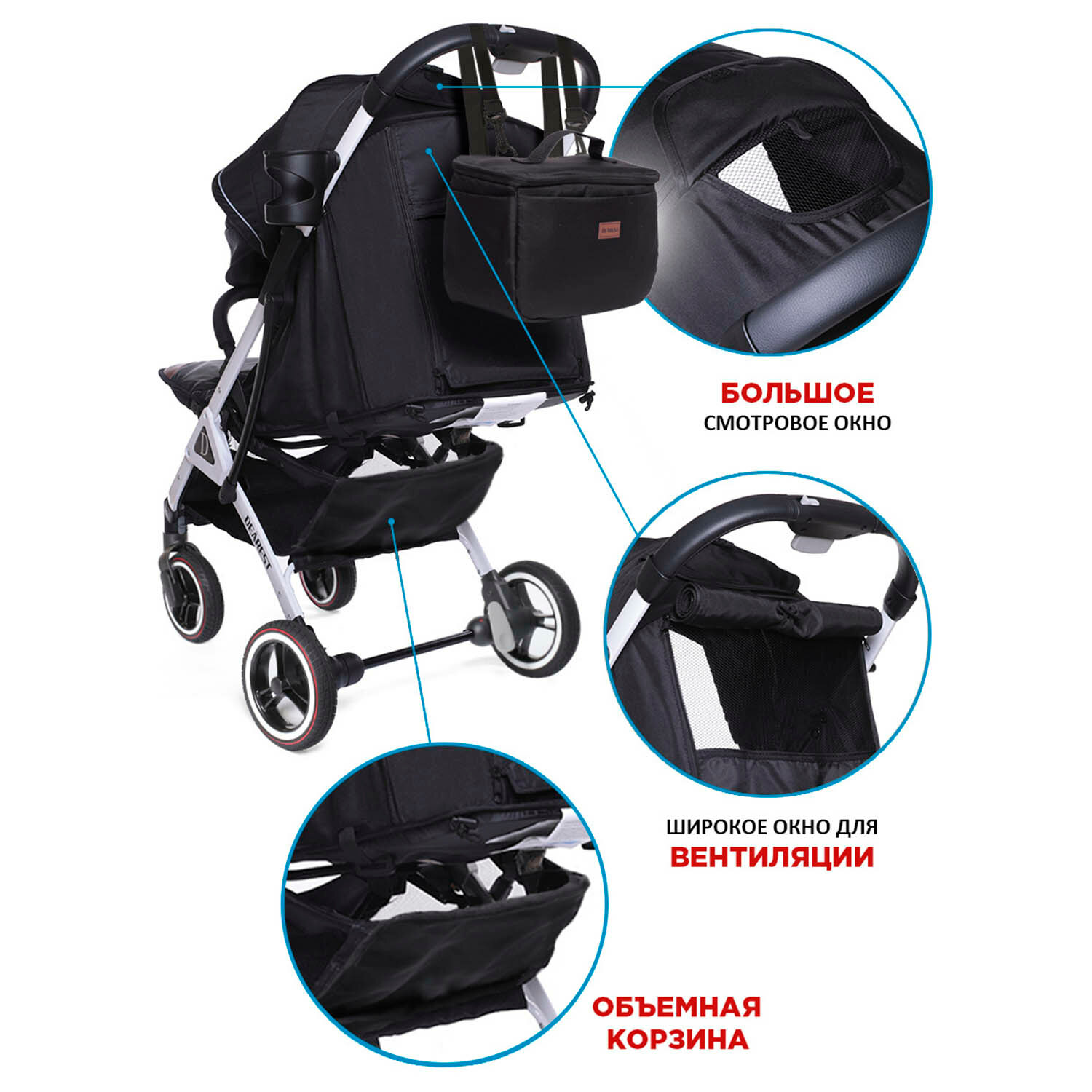 СохранитьКоляска прогулочная Dearest 819 PLUS модель 2023, с механической спинкой, большим капюшоном, полная комплектация, белая рама (черный) интересное: