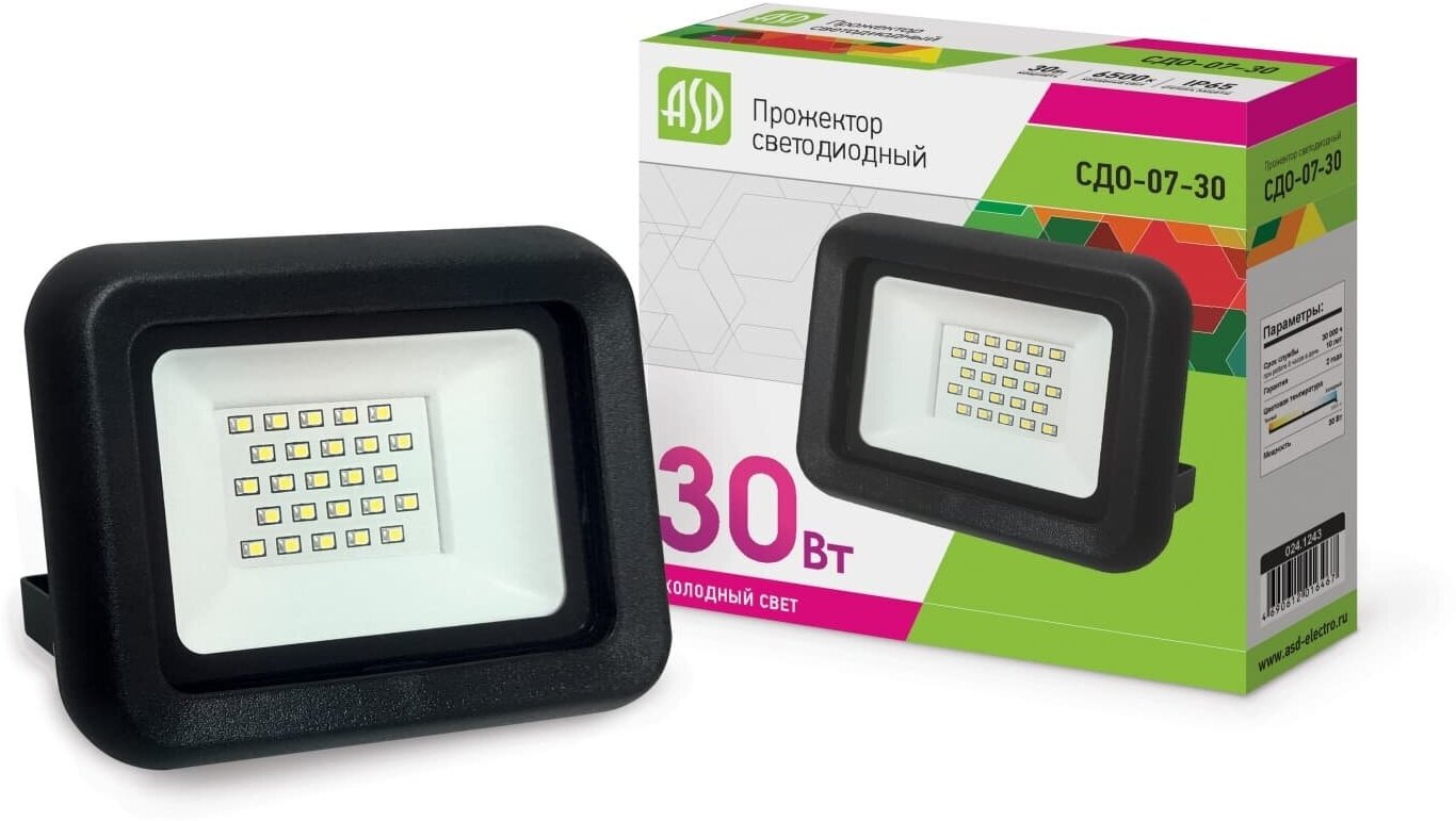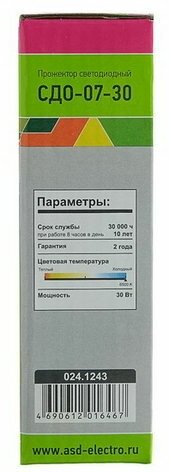 Прожектор светодиодный 30Вт СДО-07-30 6500К 2400Лм IP65 черный 4690612016467/4690612034690 IN HOME интересное: