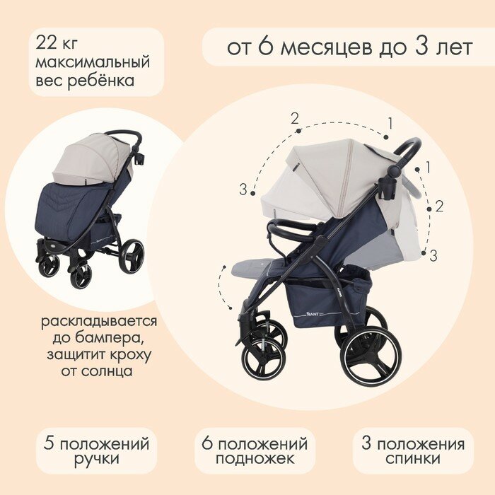 Коляска детская Rant прогулочная, Basic Alpine, цвет бежевый, с корзиной и подстаканником (4670078629838)