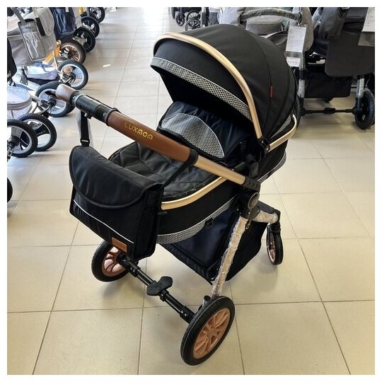 Детская коляска-трансформер 2 в 1 Luxmom V9, черный с сумкой