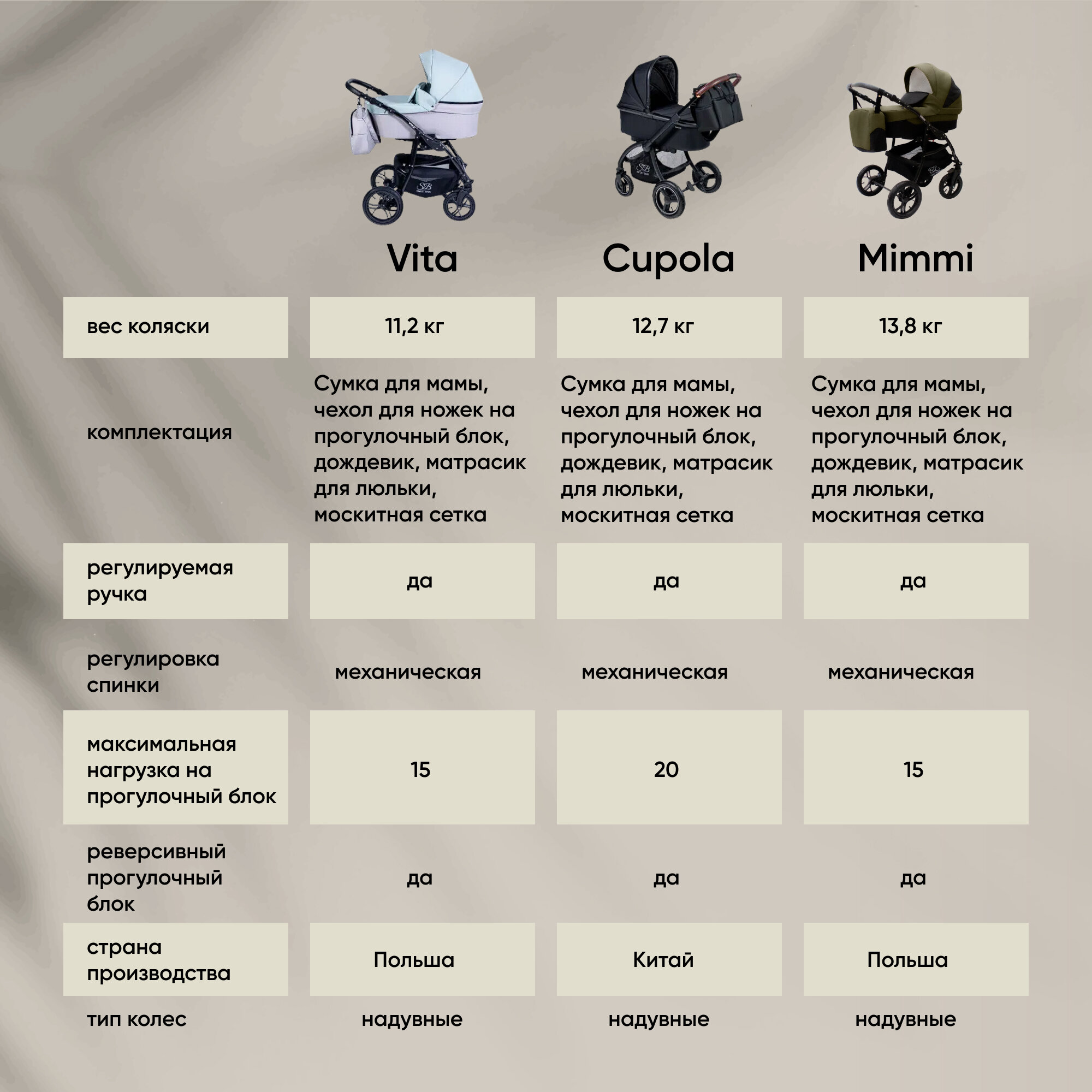 | Аксессуары в комплекте | антимоскитная сетка, бампер, дождевик, капюшон, матрас, накидка на ноги |