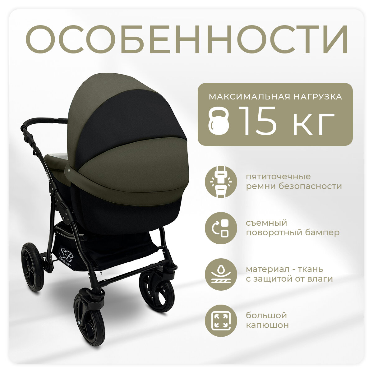 Коляска 2 в 1 Sweet Baby 426897 Mimmi Khaki интересное: