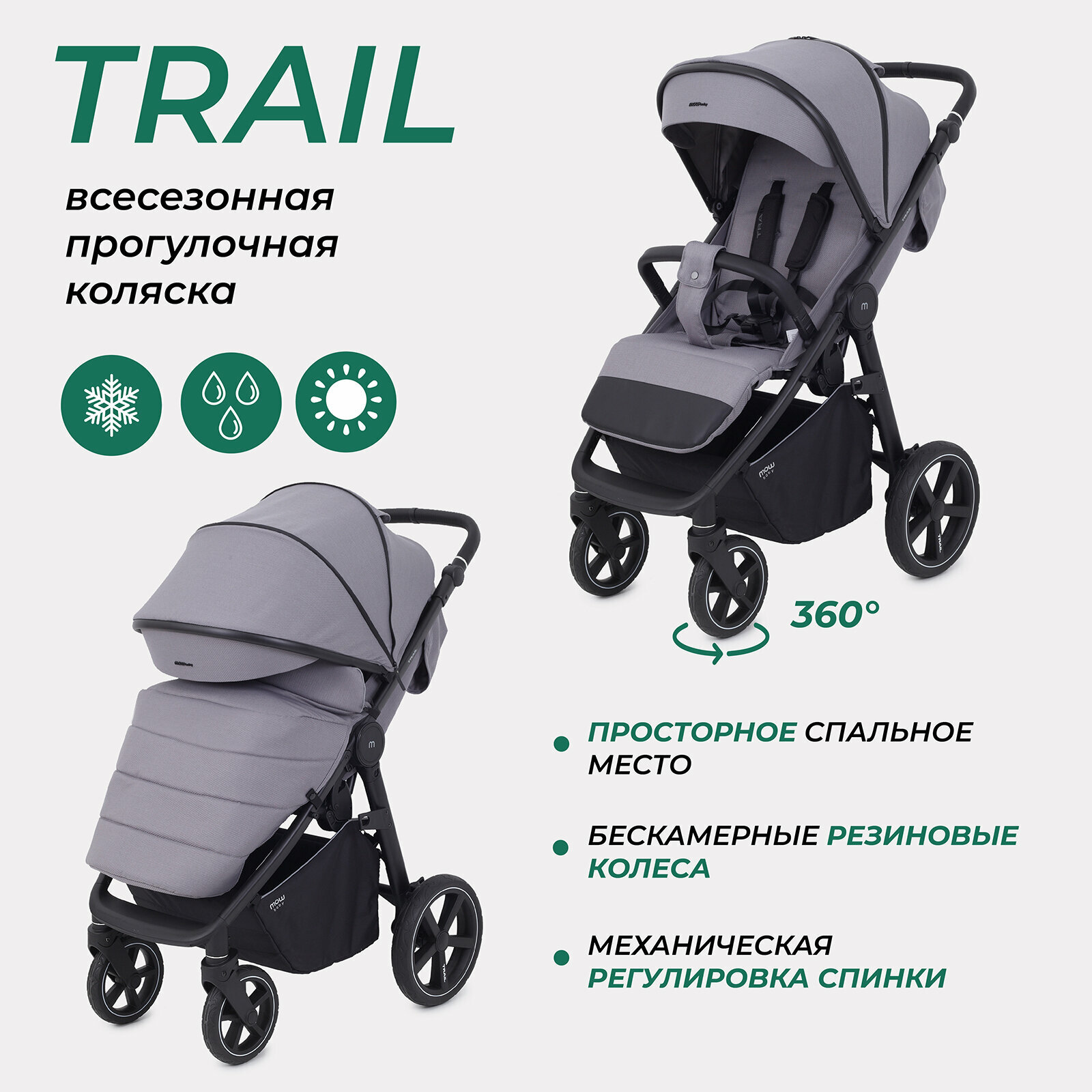 Коляска детская прогулочная всесезонная MOWBaby TRAIL MB090 Grey интересное: