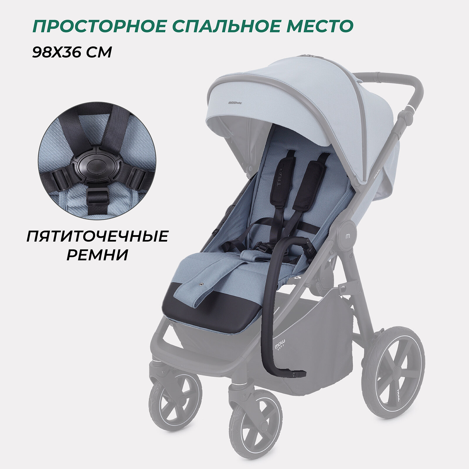 Коляска детская прогулочная всесезонная MOWBaby TRAIL MB090 Blue интересное: