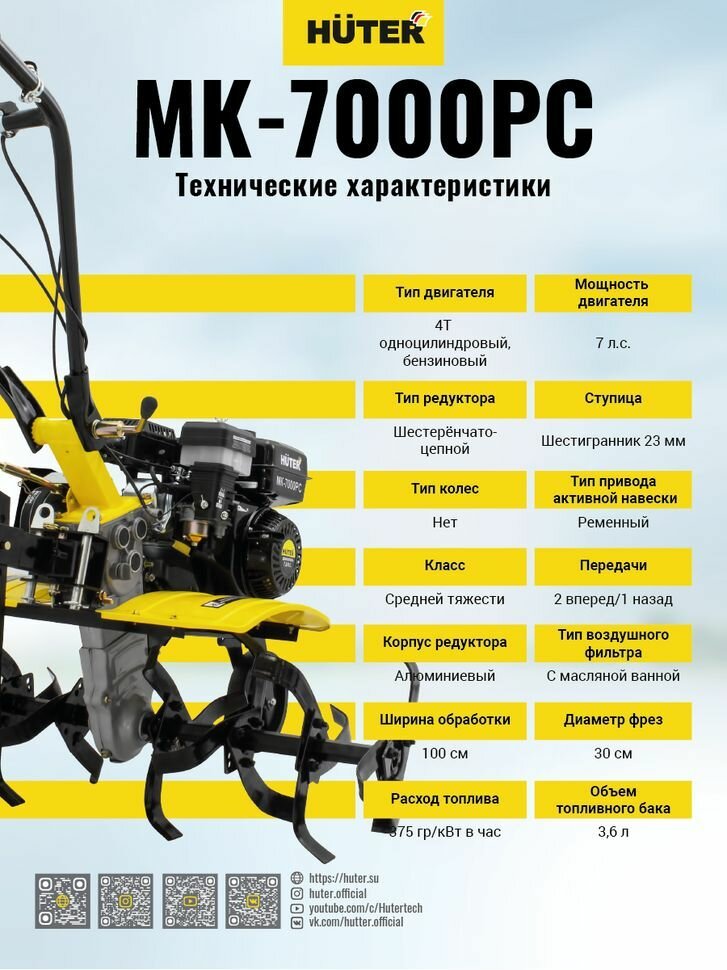 Сельскохозяйственная машина МК-7000PС без колес Huter интересное: