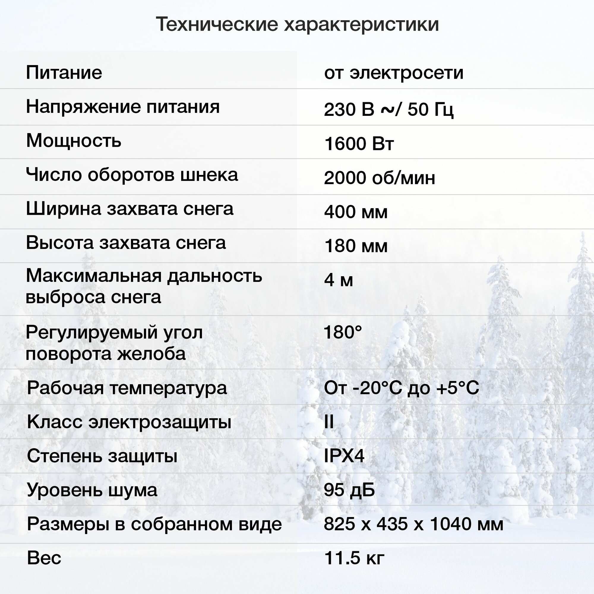 | Высота захвата снега | 18 см |