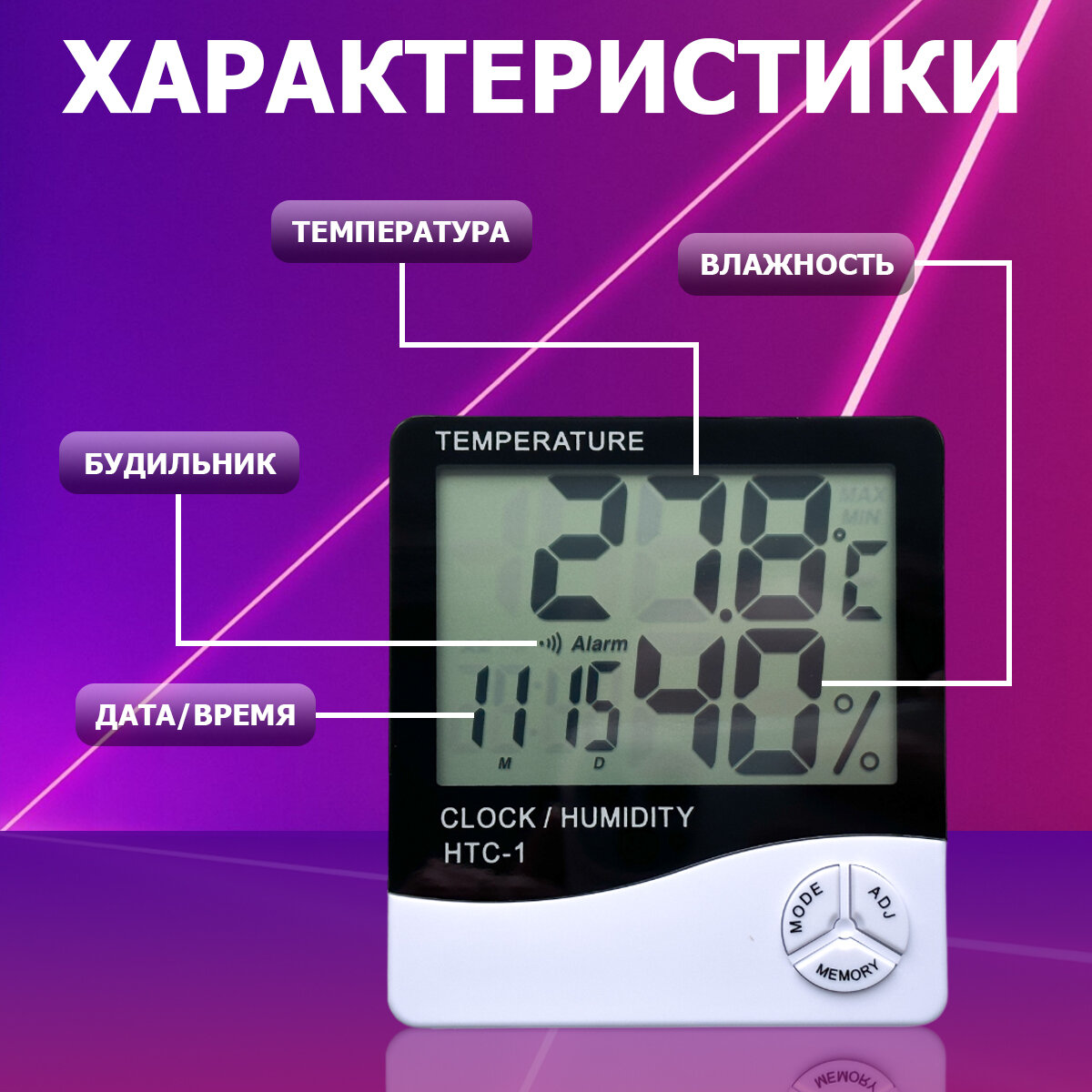 Термометр-гигрометр для дома с отображением температуры, влажности, даты, времени и будильником интересное:
