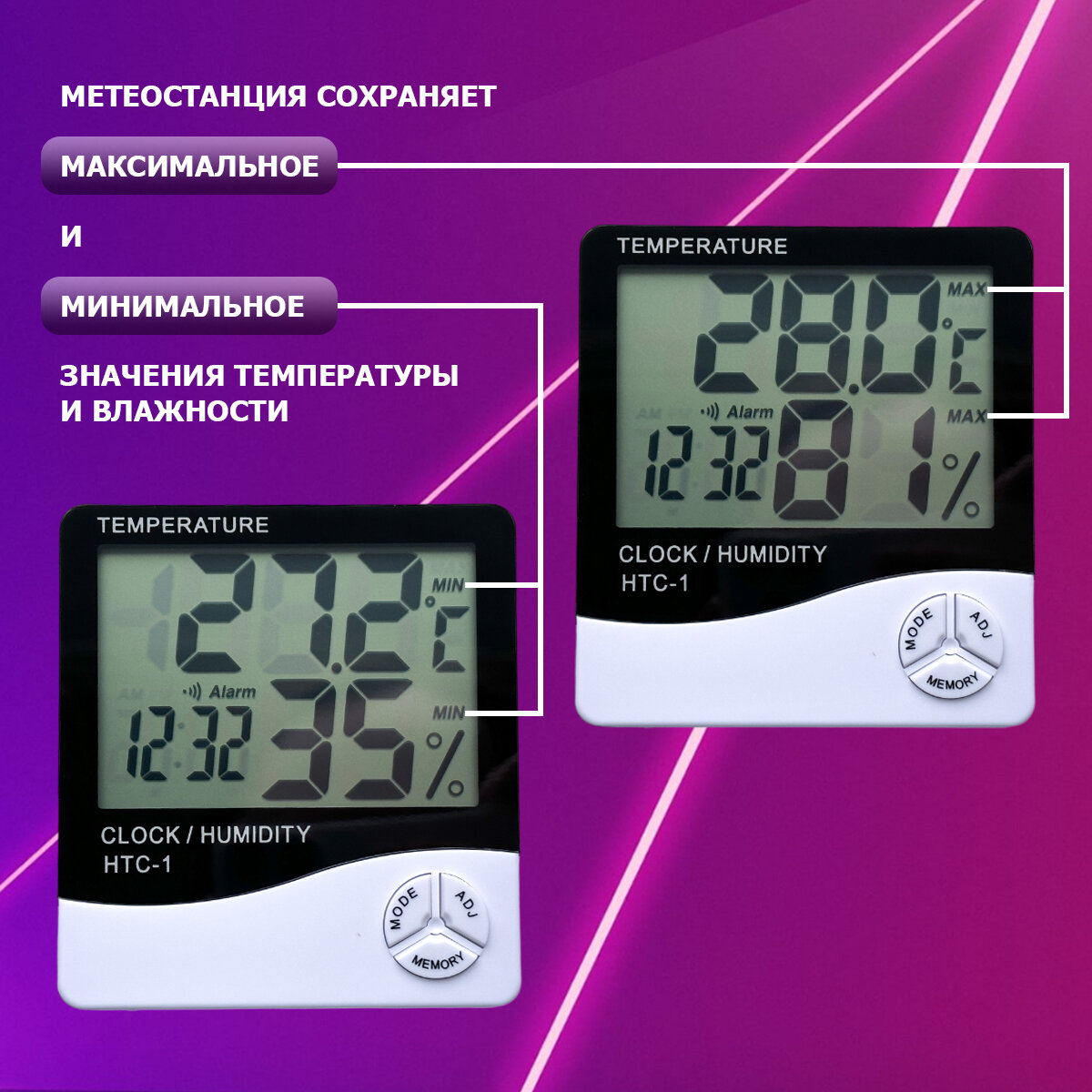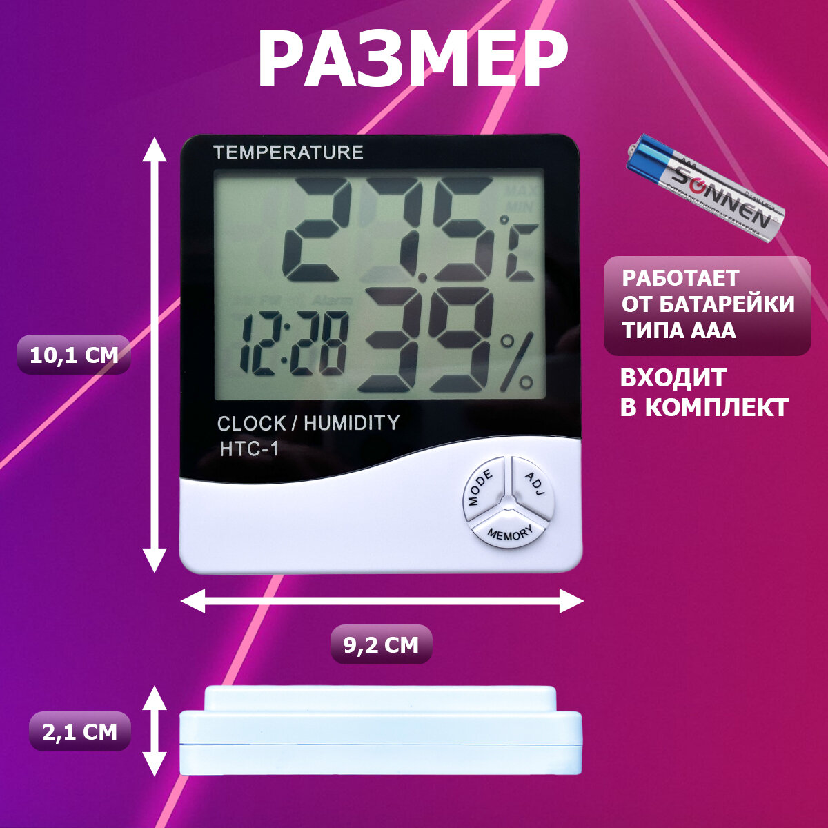 Купить Термометр-гигрометр для дома с отображением температуры, влажности, даты, времени и будильником