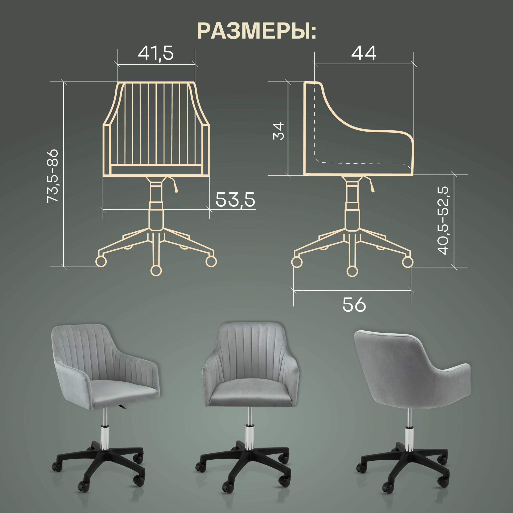 | Конструктивные особенности | с газлифтом / с колесами (роликами) / с подлокотниками |