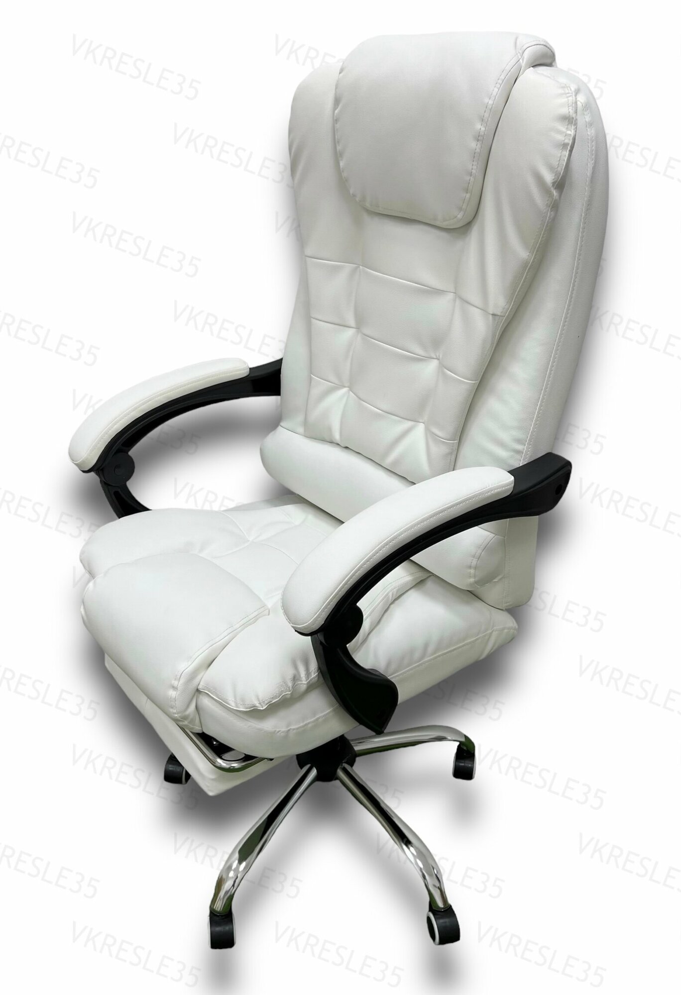 Компьютерное Кресло, Кресло руководителя, Регулируемый подголовник, с подставкой для ног, цвет Белый
