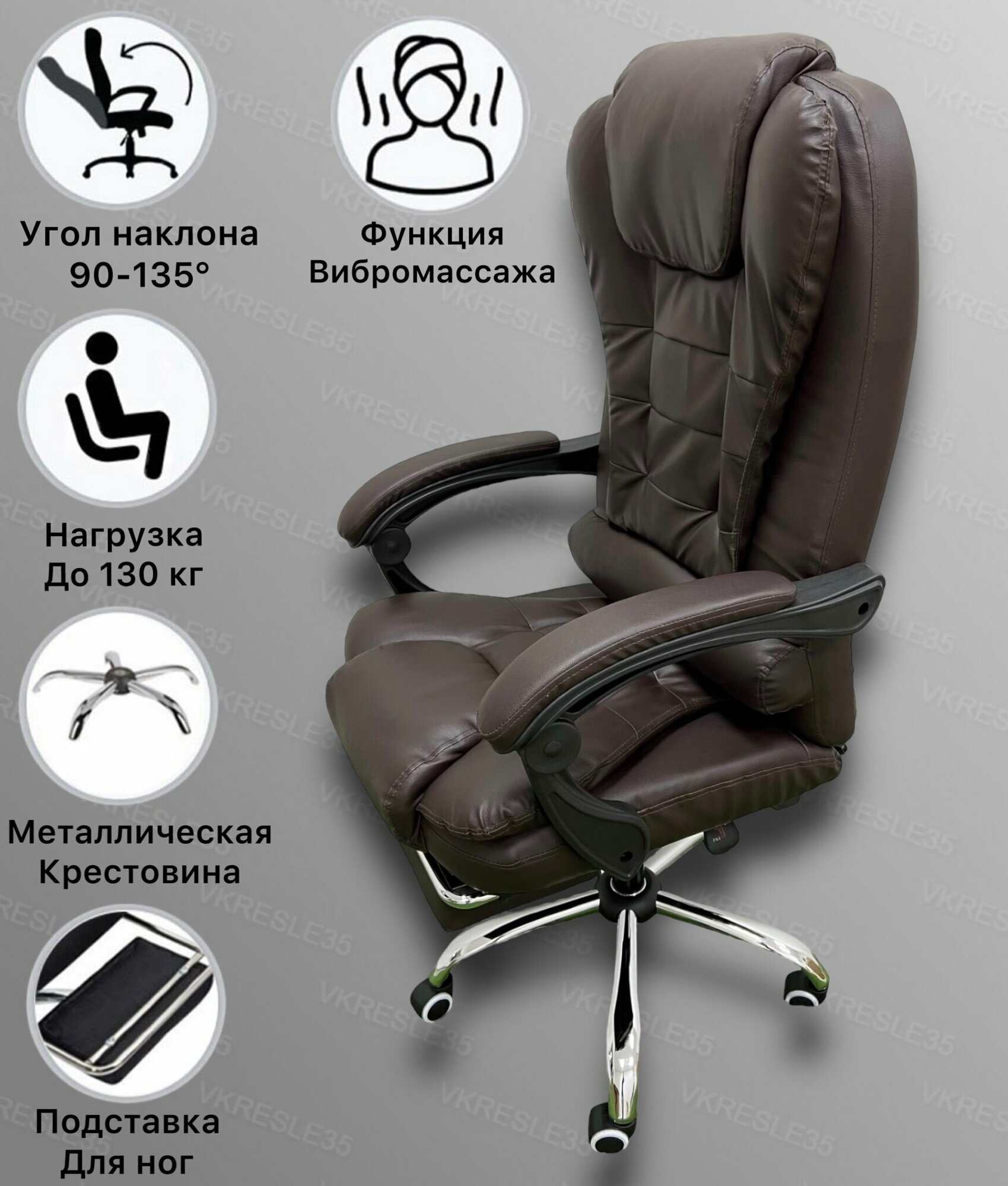 Компьютерное кресло - Кресло Руководителя, функция Вибромассажа , цвет коричневый, с подставкой для ног
