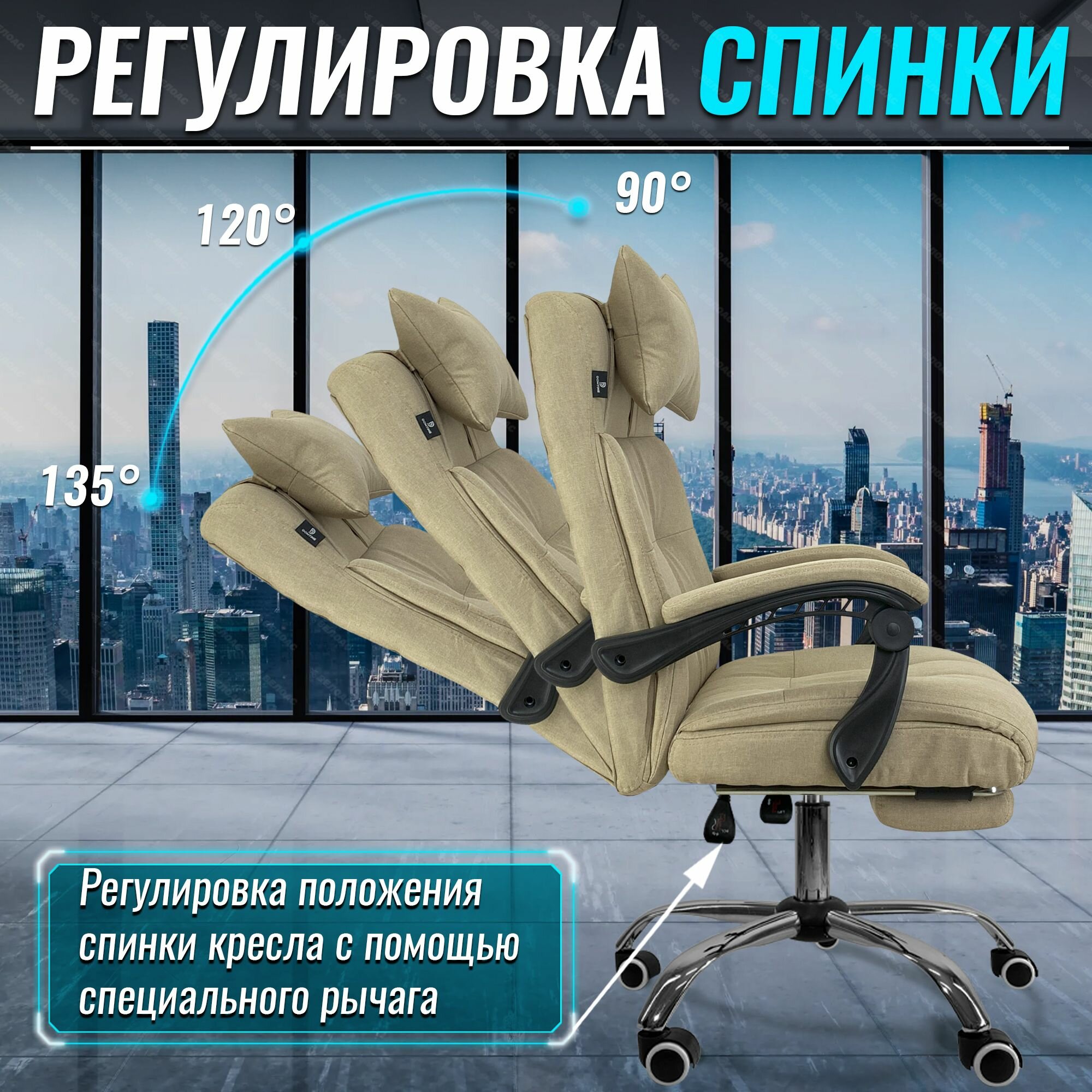 Кресло компьютерное REBEL RISE для руководителя, с подножкой, из прочной ткани, хаки интересное: