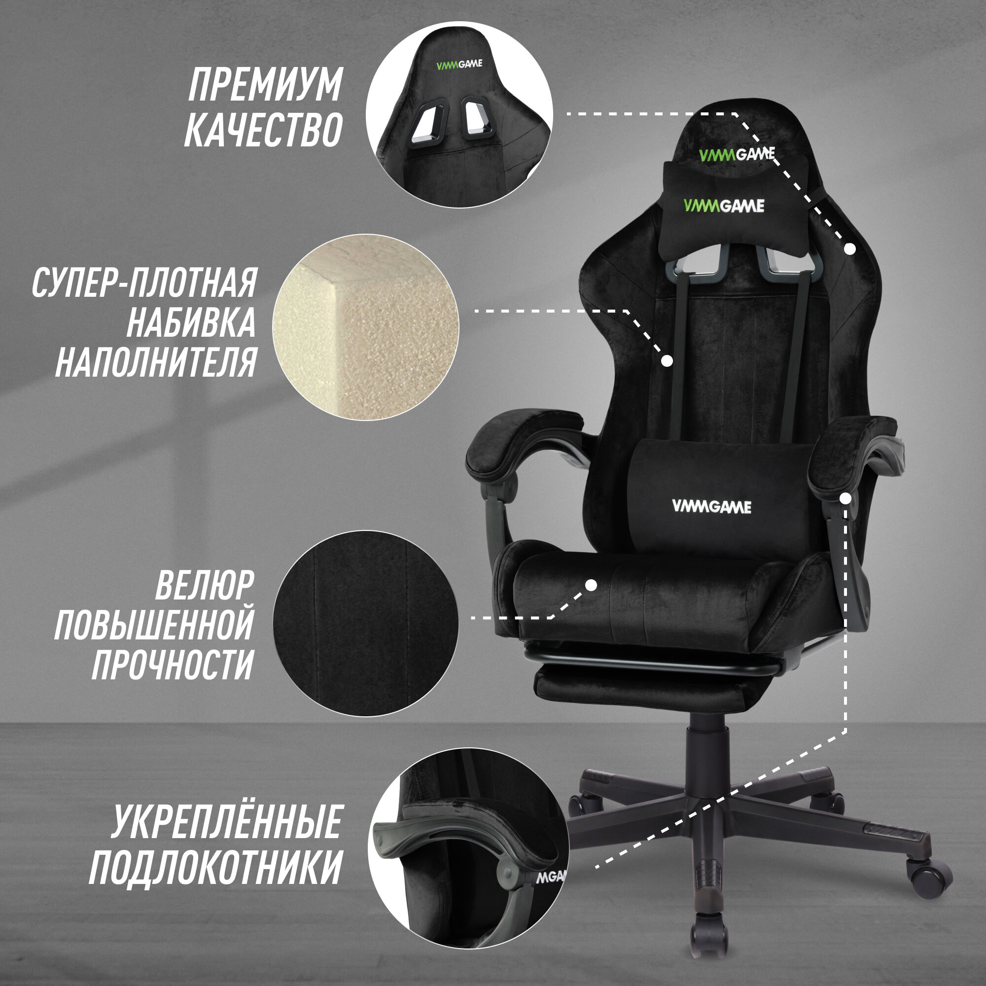 Игровое компьютерное кресло VMMGAME THRONE VELOUR GREEN