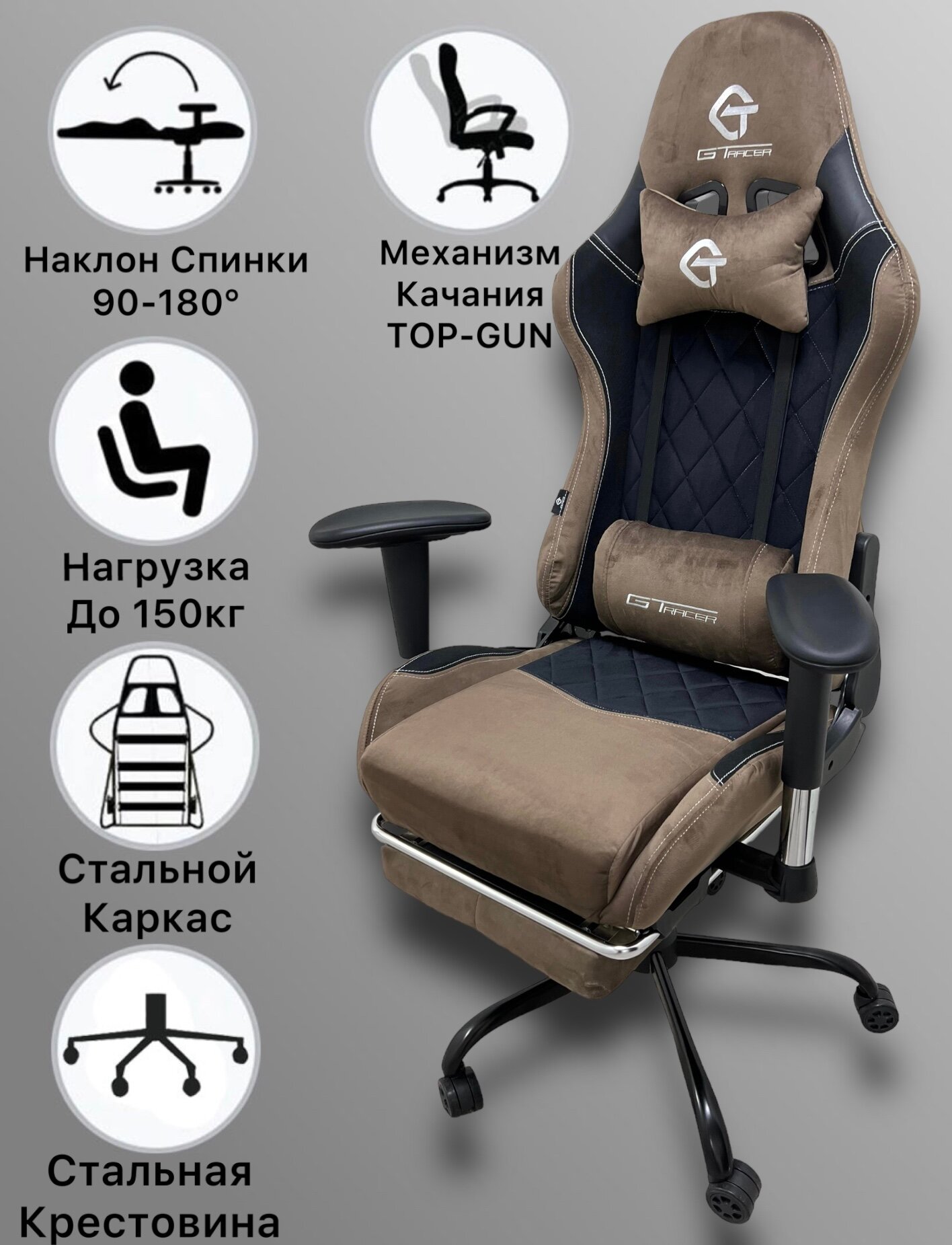 Купить Игровое Компьютерное Кресло,Черно-Коричневый, Велюр, с подставкой для ног