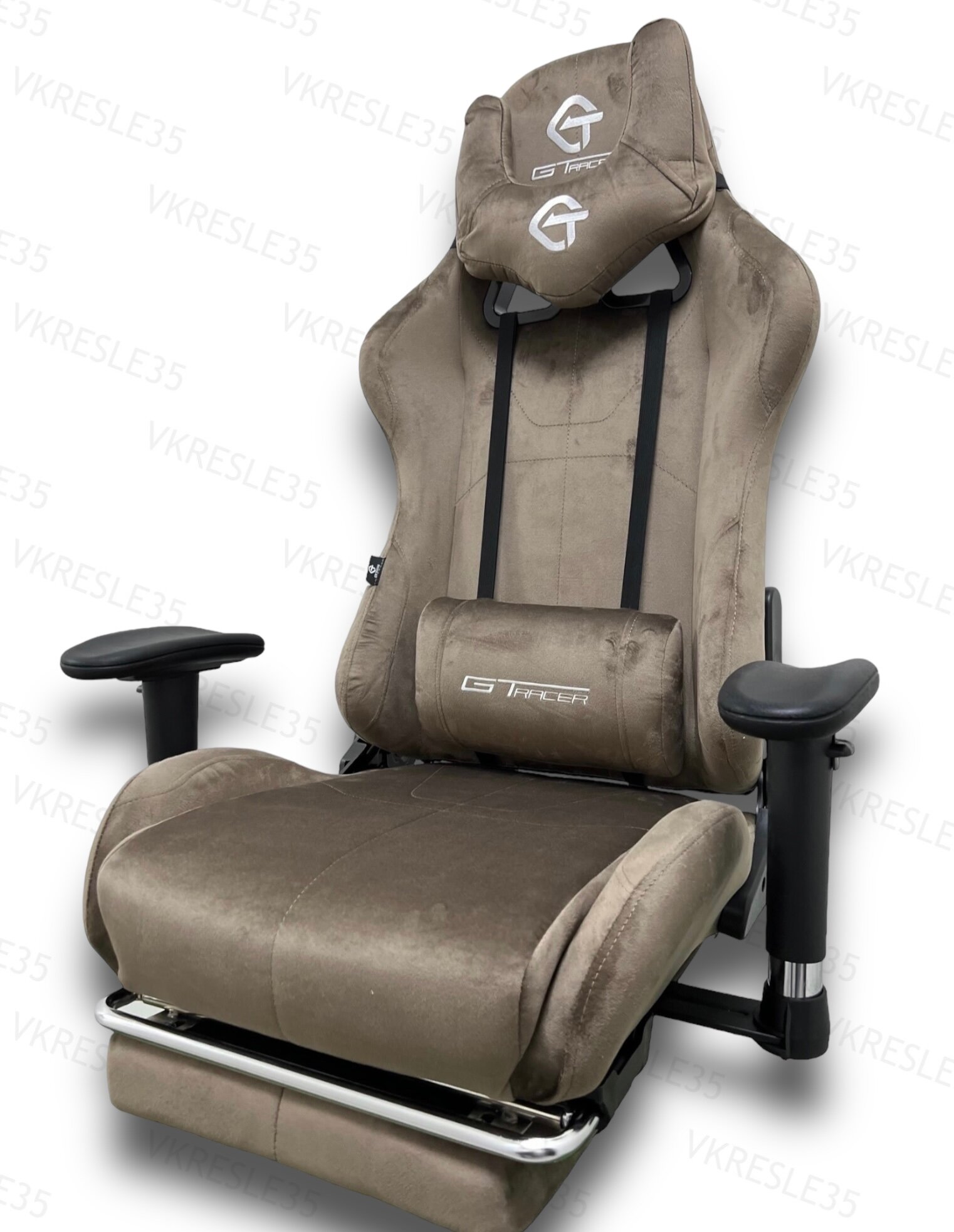 Купить Игровое Компьютерное Кресло, Велюр ,Коричневый,с подставкой для ног