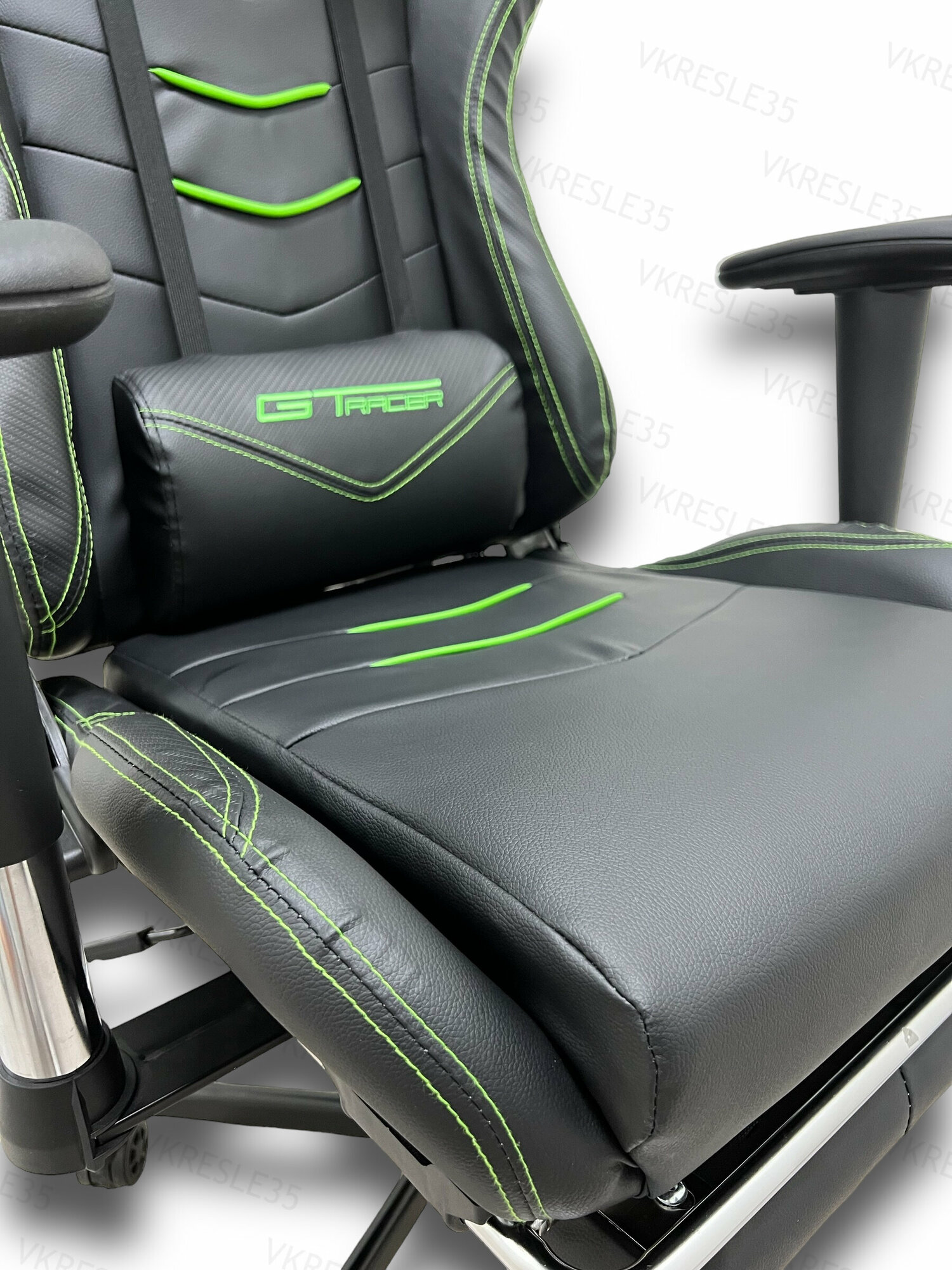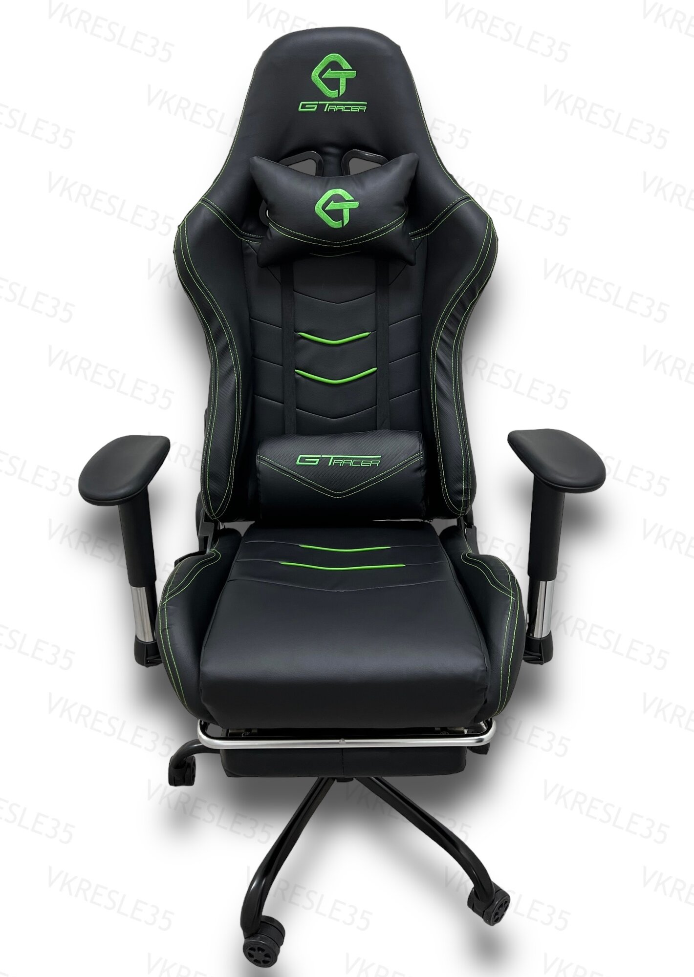 Купить Игровое Компьютерное Кресло,Черно-Зеленый, с подставкой для ног