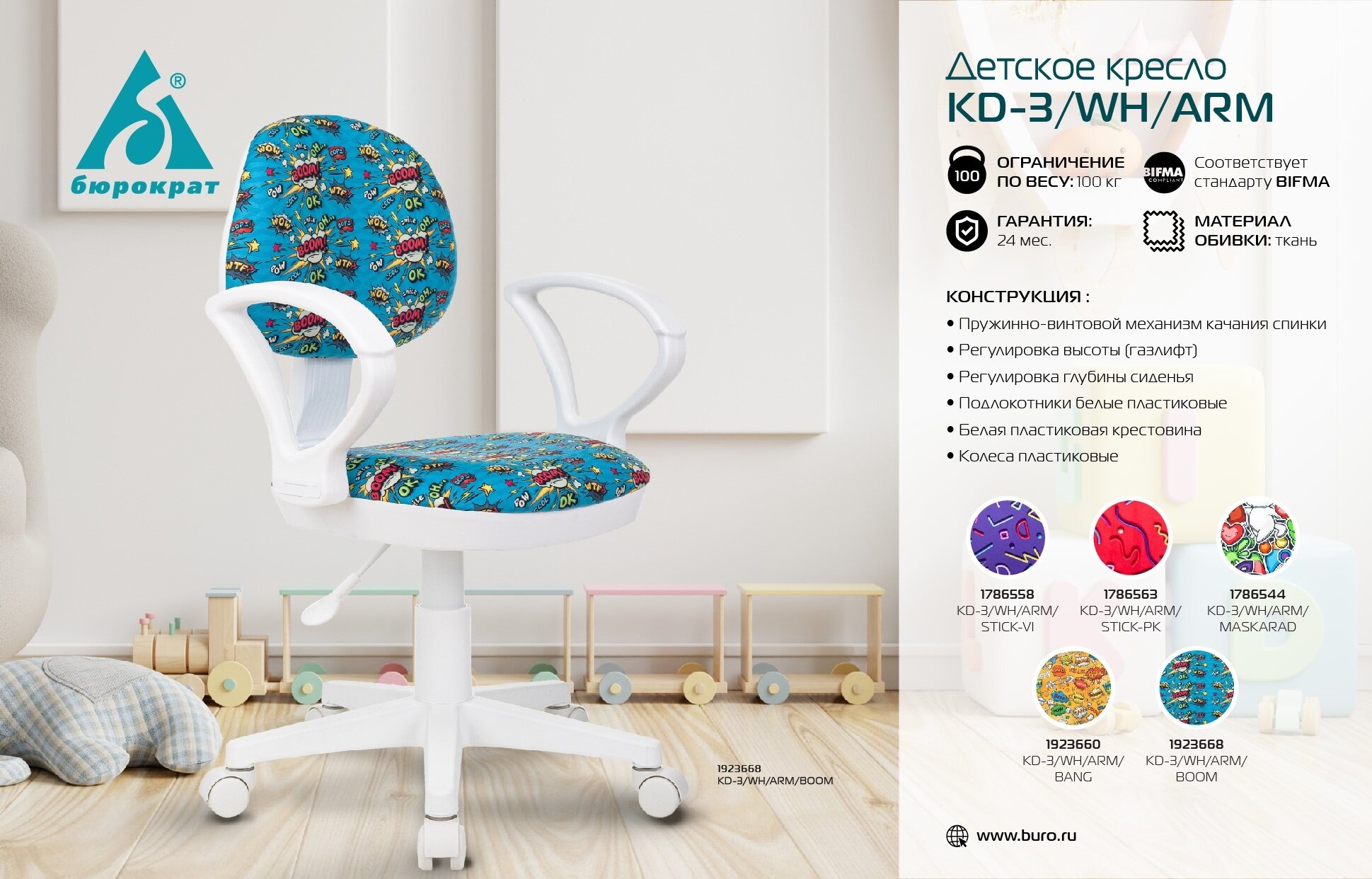 Кресло детское Бюрократ KD-3/WH/ARM интересное: