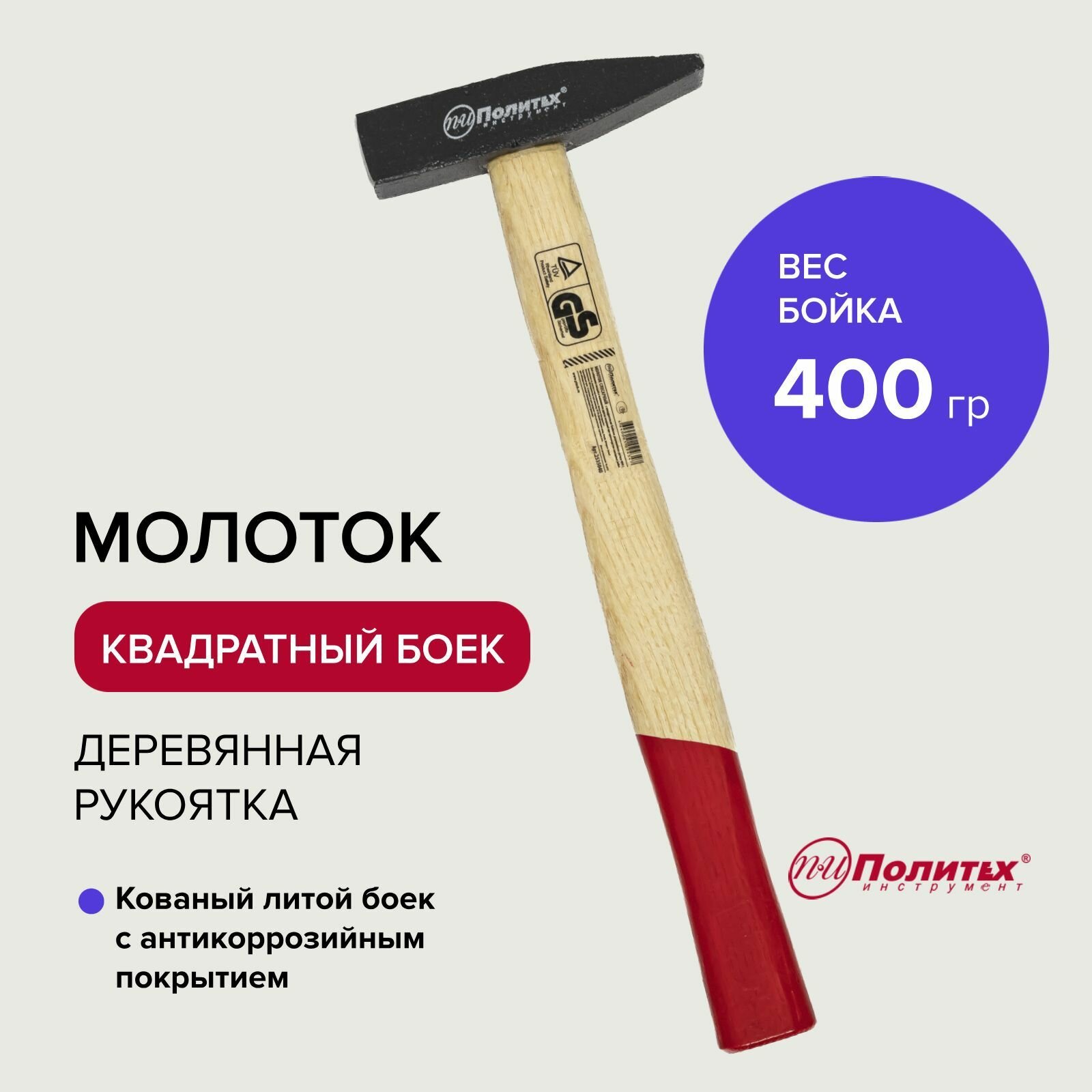 Купить Политех Молоток с квадратным бойком дер.ручка 400г 2535040
