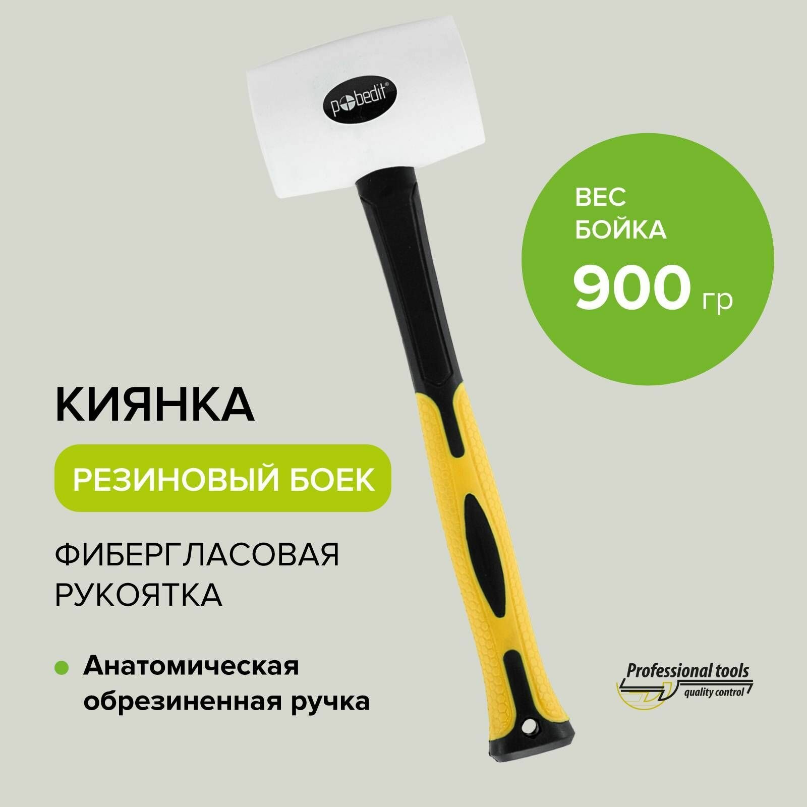 Купить Киянка резиновая белая с фиберглассовой рукояткой 900 г, Pobedit
