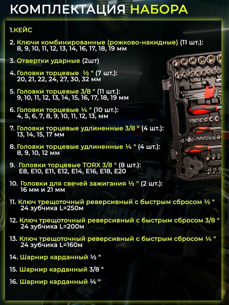 Набор инструментов для автомобиля 121 предмет интересное: