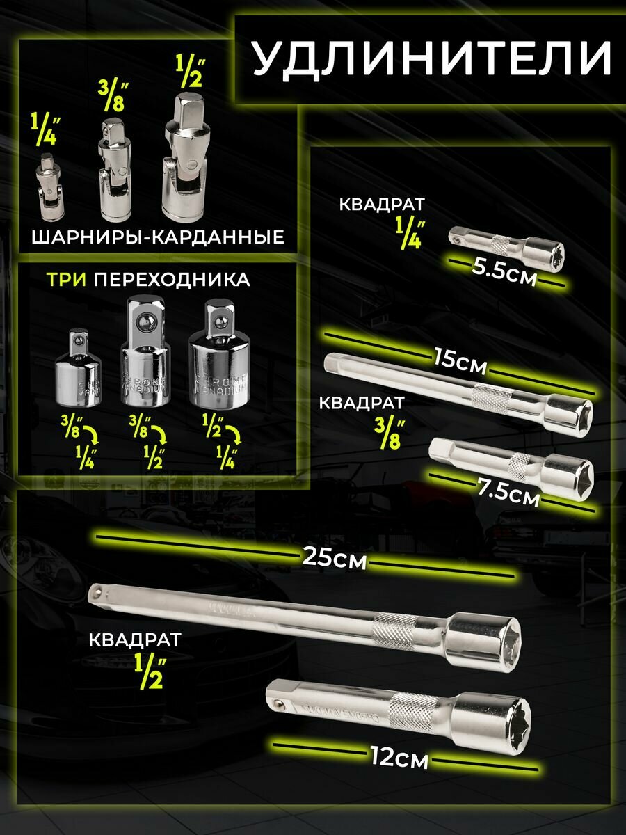 | Тип головок | торцевые / дюймовые / свечные / удлинённые |