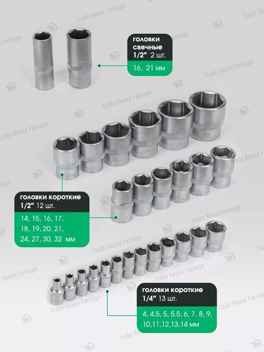 Набор инструментов ударных 26 предметов 3/4" (12-гранные) Forsland