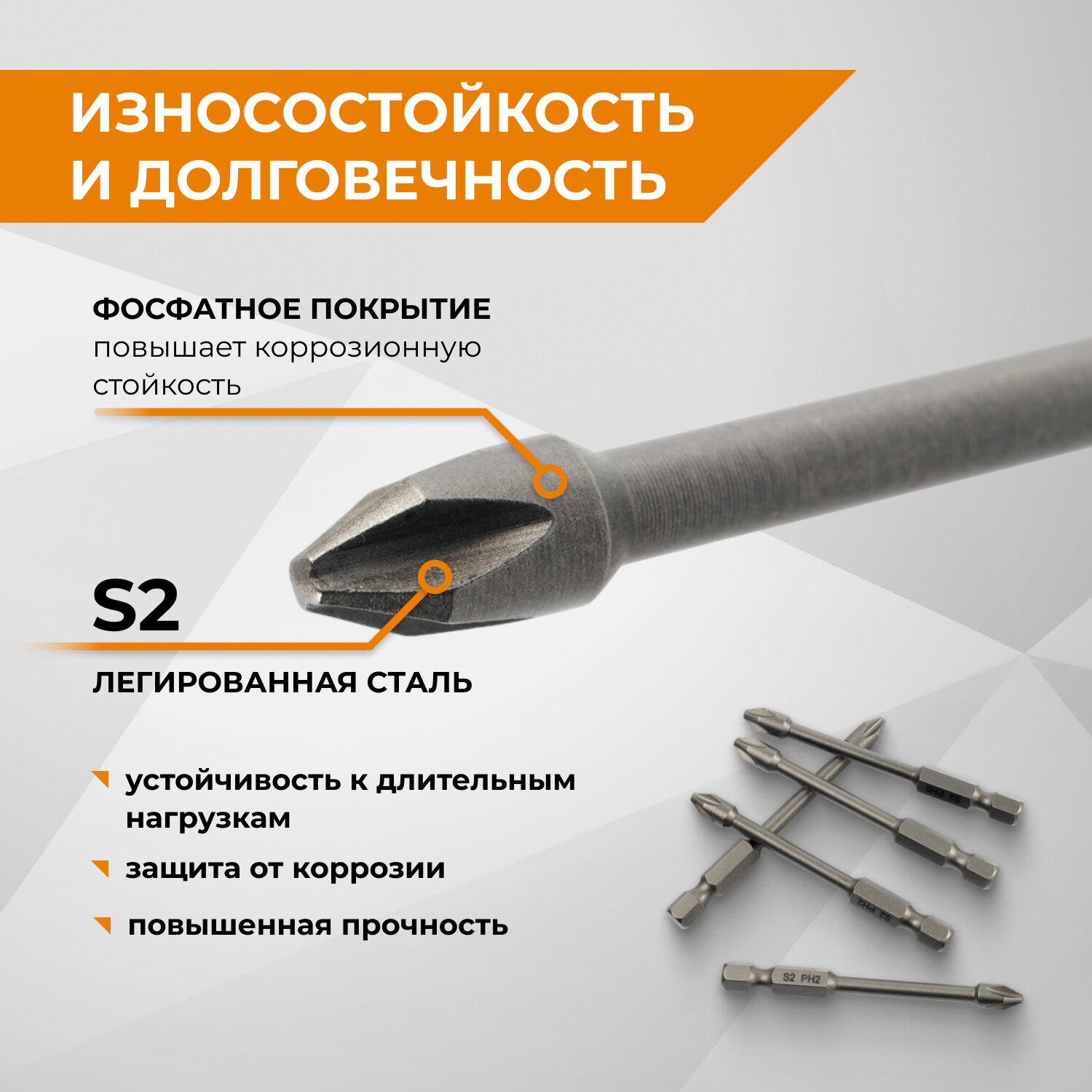 | Биты подробно | Набор торсионных бит S2 PH2x70 мм 5 шт |