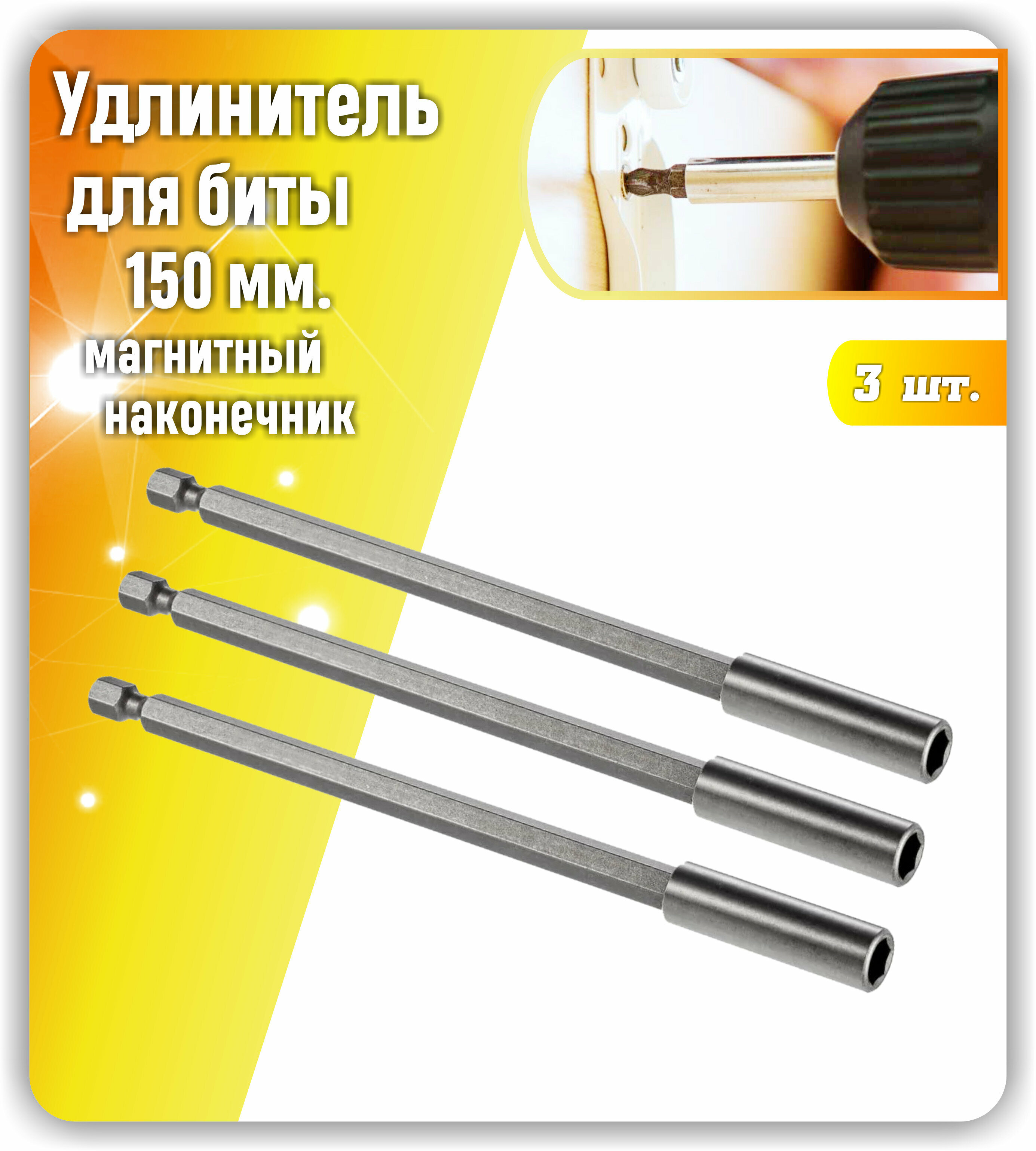 набор Удлинитель для биты установка в шуруповерт, длина 150 мм, магнитный наконечник 3шт. интересное: