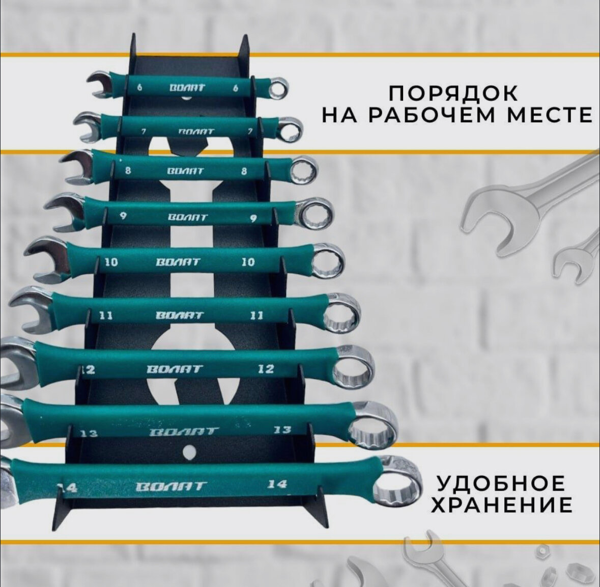 Держатель для хранения гаечных и накидных ключей, 9 ключей от 5мм до 24мм интересное: