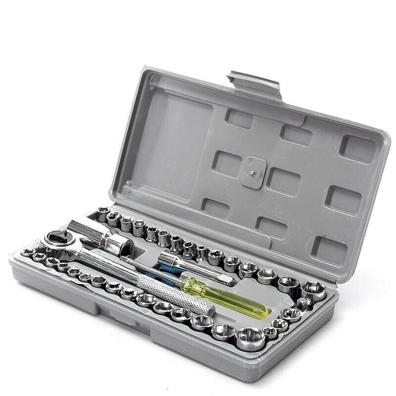 Купить Набор инструментов 40 предметов в кейсе / Набор инструментов для автомобиля / Набор головок / Ключ трещотка