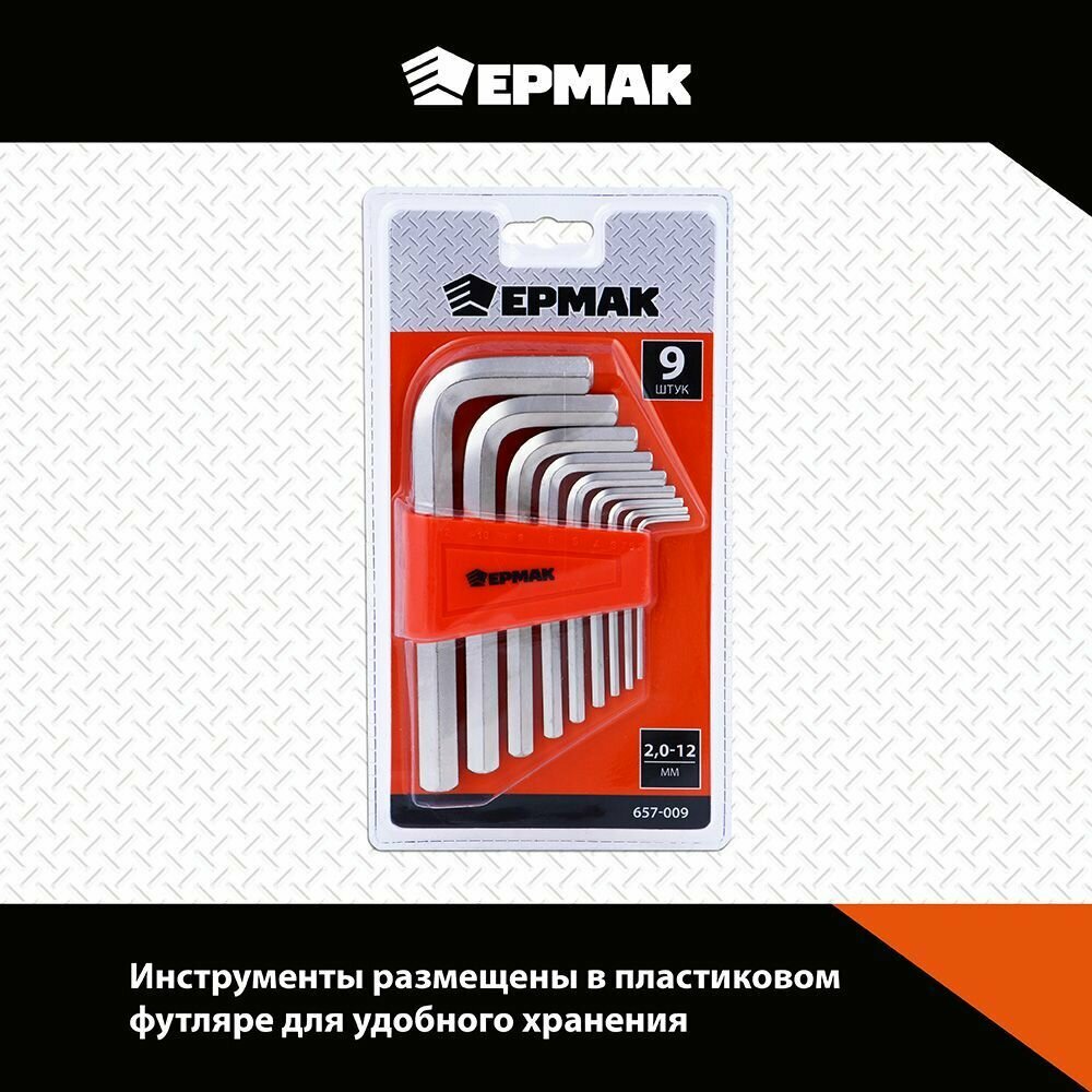 Набор шестигранников Ермак 2.0-12мм 9шт. 657-009