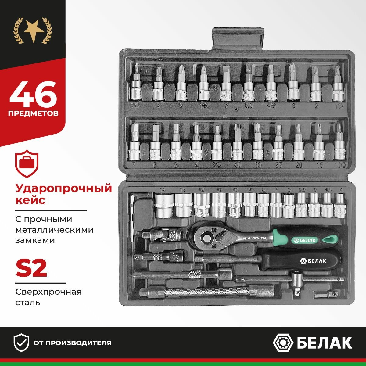 Набор инструментов для автомобиля и дома 46 предметов БелАК БАК.07038 интересное: