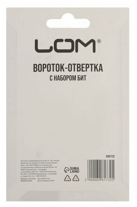 Вороток-отвертка с набором бит ЛОМ, Г-образный, 11 предметов интересное: