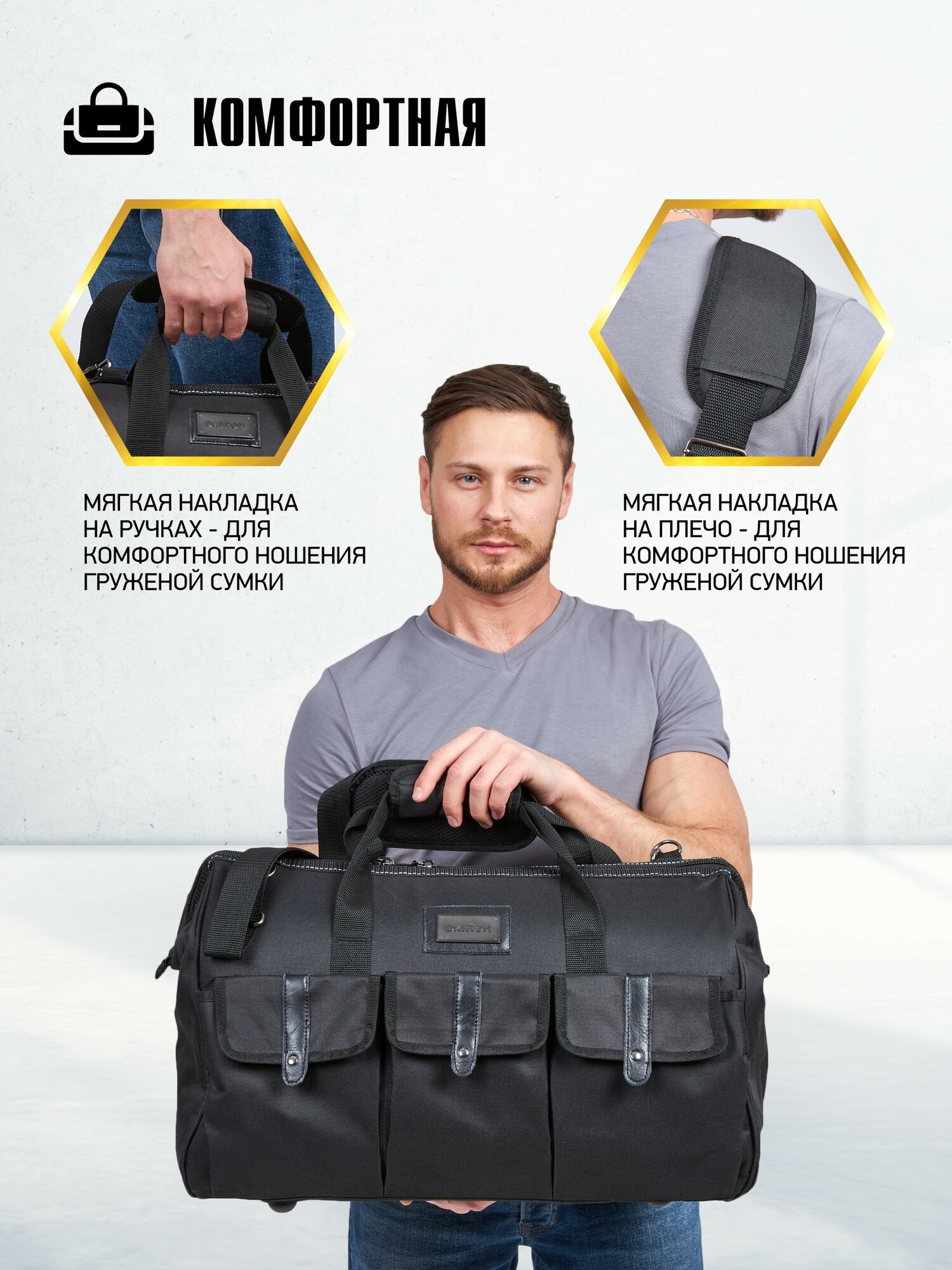 | Плюсы: | сумка отличная, прочная качественная, дно жесткое,