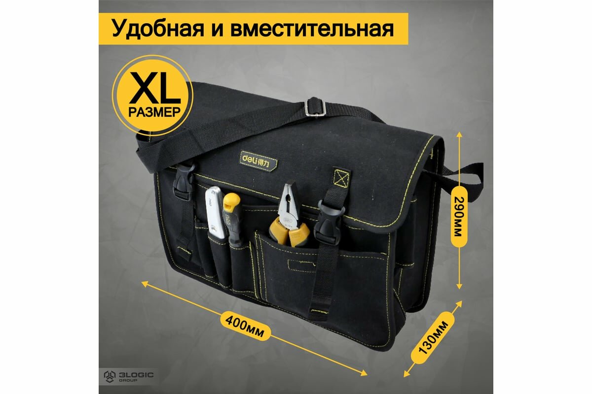 Купить DELI Сумка-планшет для инструментов DL-P7 (400x130x290мм, 8 карманов, плечевой ремень, ткань Канвас) 130333