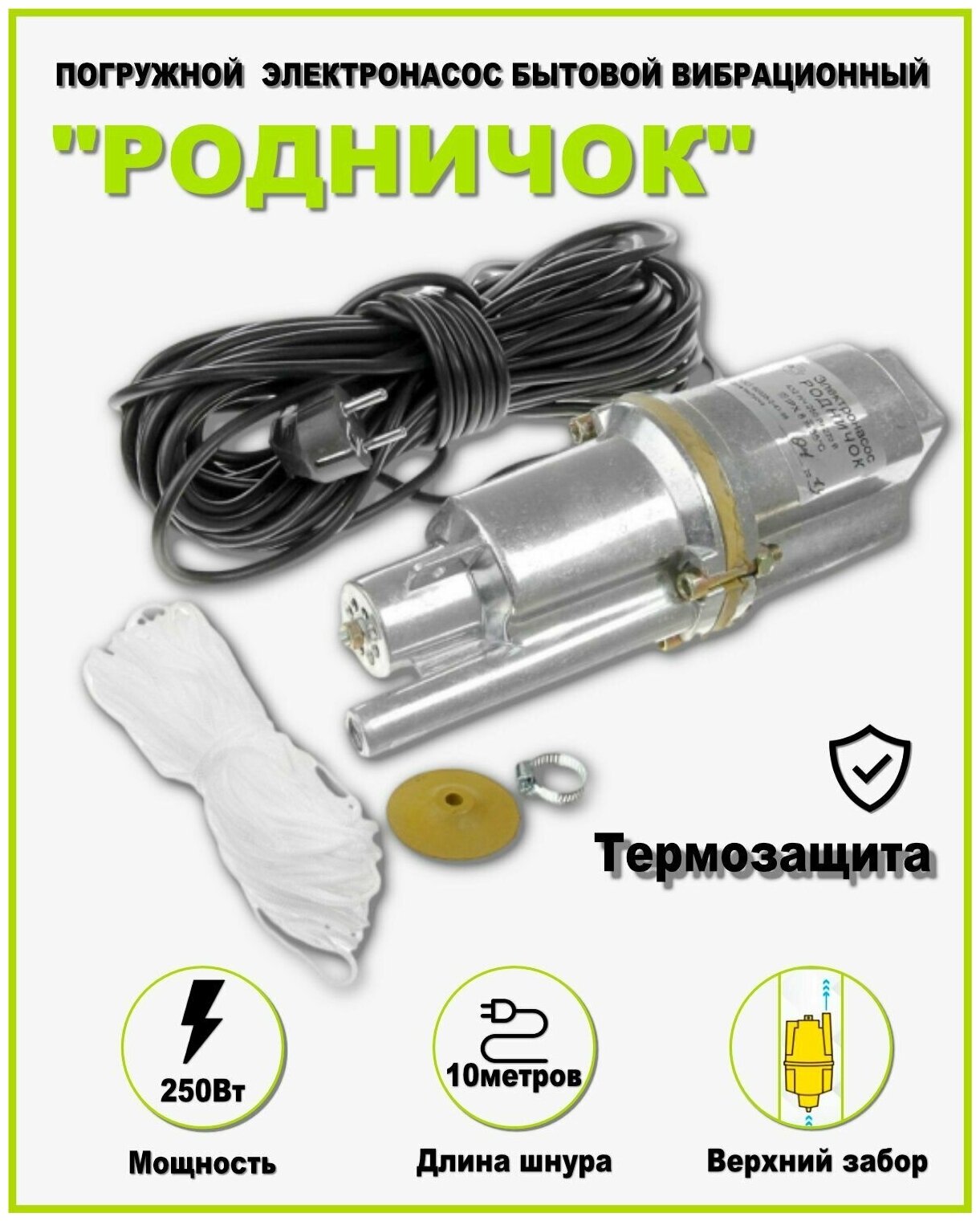Насос родничок нижний забор, 10 м, термозащита, медь интересное: