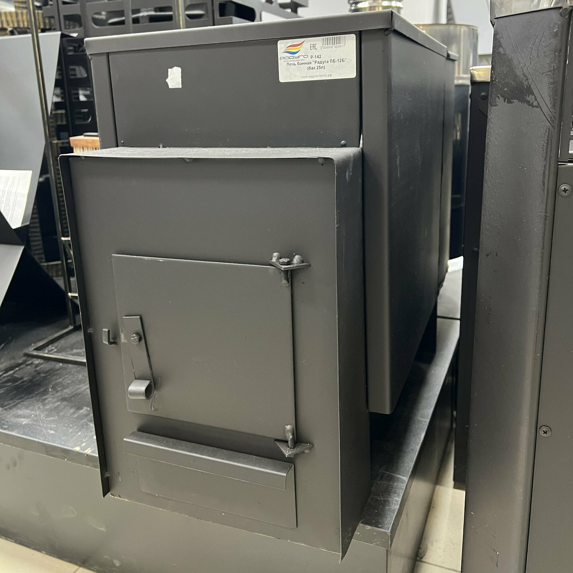 Печь банная Радуга ПБ-12Б дровяная с баком для воды на 25 л и открытой каменкой, печка для бани на дровах, банная каменка интересное: