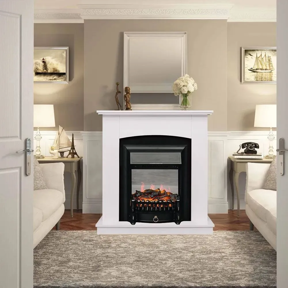 Купить Электрокамин Barcelona белый с очагом Fobos FX Black